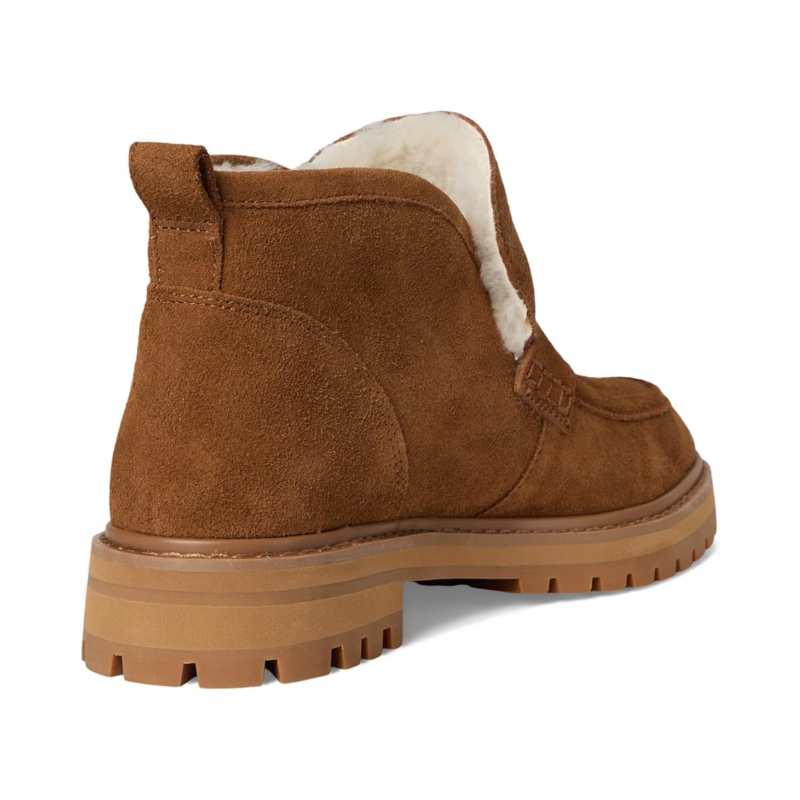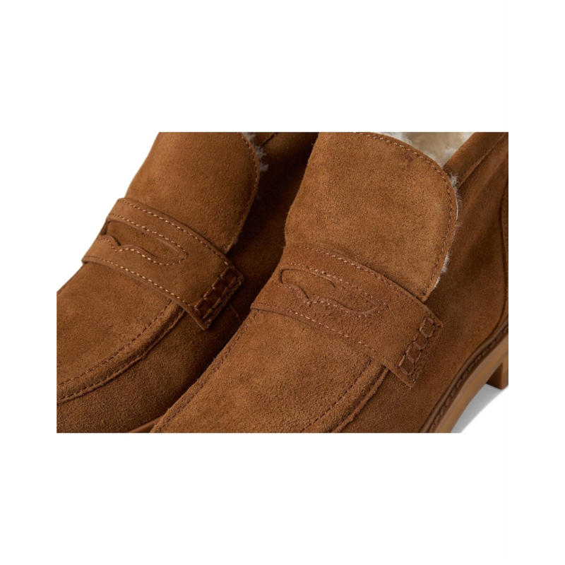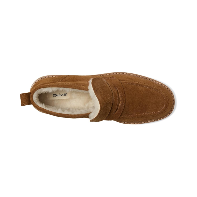 - The Madewell Rory Lug Loafer Bootie - Suede Shearling is a modern hybrid that blends the polished look of a loafer with the rugged edge of a boot. Designed in rich suede upper with plush shearling lining, it delivers both warmth and texture. Offering pull-one ease, the silhouette features a classic moc toe design and a lug sole for traction and durability.