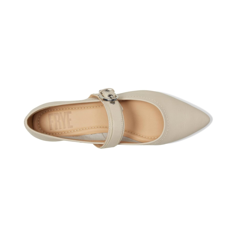 - The classic, unbound styling Frye Heather Buckle Mary Jane. Crafted with a luxurious leather upper and lining, this pointed-toe flat offers a sleek, sophisticated look thats effortlessly versatile. The adjustable buckle closure ensures a secure, customized fit, while the rubber insole and outsole provide all-day comfort and reliable traction. Available in premium suede, leather, and metallic finishes, this chic Mary Jane seamlessly transitions from brunch dates to evening soirees.