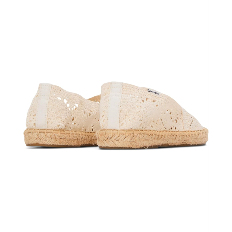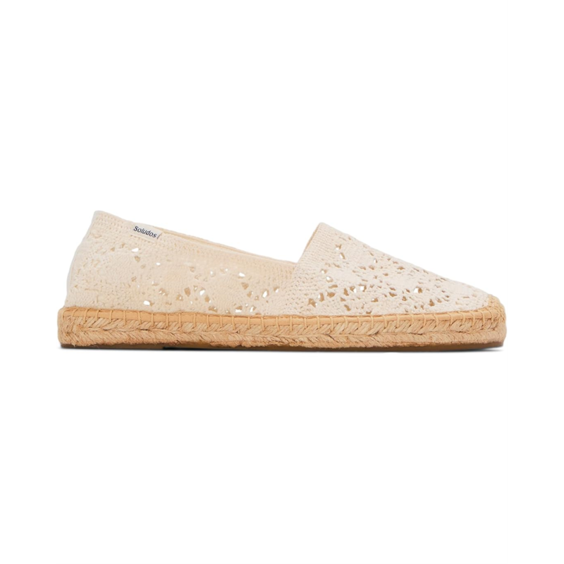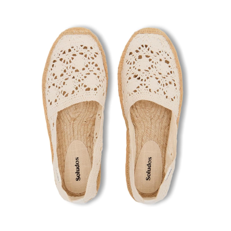 - A summer classic. Made by Soludos since 2010. The perfect marriage of understated style and time-tested warm weather comfort, the Original Espadrilles are the perfect choice for the beach to the city and everywhere in between. Inspired by the beloved Mediterranean beach staple, yet updated, and dare we say it, improved, with a custom feminine shape, better construction, and higher-quality fabrics. The secret is the same: the 100% cotton upper, authentic 100% Jute sole, and hand-crafted stitching create a shoe that breathes so you can stay cool wherever the day and night take you. The limited crochet collection was inspired by the perfect Italian summer. Featuring an elegant lace like design and breezy unlined upper.