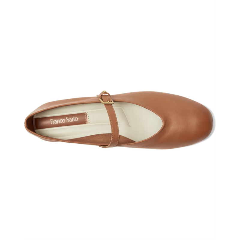 - The new classic, Franco Sarto Odilia Mary Jane Shoes. Crafted with a supple leather upper and insole, complemented by a soft faux leather lining, these shoes deliver a premium feel from the moment you slip them on. The pull-on design with a secure buckle strap closure makes getting ready a breeze, while the sleek sculpted architectural heel and pointed-toe flat profile lend refined sophistication to any outfit. Enjoy lightweight support that keeps you comfortable through long workdays, celebrations, and everything in between. Built with cement construction and a durable synthetic rubber outsole, the Odilia offers impressive flexibility for natural, easy movement.