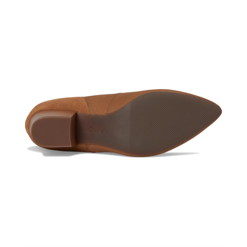 - Exude sleek sophistication wearing the Clarks Ellanie Vibe Boots, designed in a pointed toe silhouette with a solid block heel. The ankle-high boots are crafted with a black leather & suede upper, mesh lining, and a 5mm Ultimate Comfort foam footbed that delivers lasting cushioning. The side zipper closure ensures a secure fit.