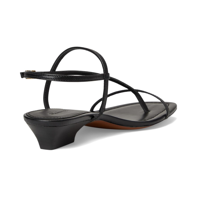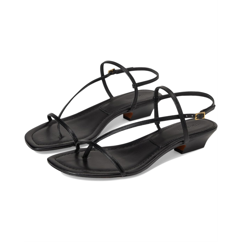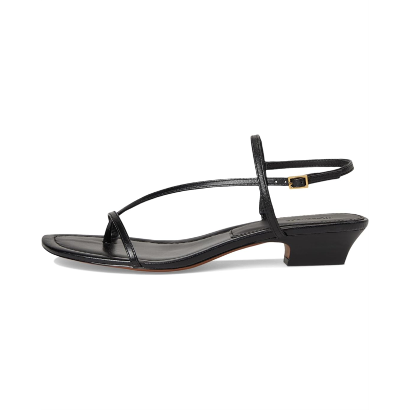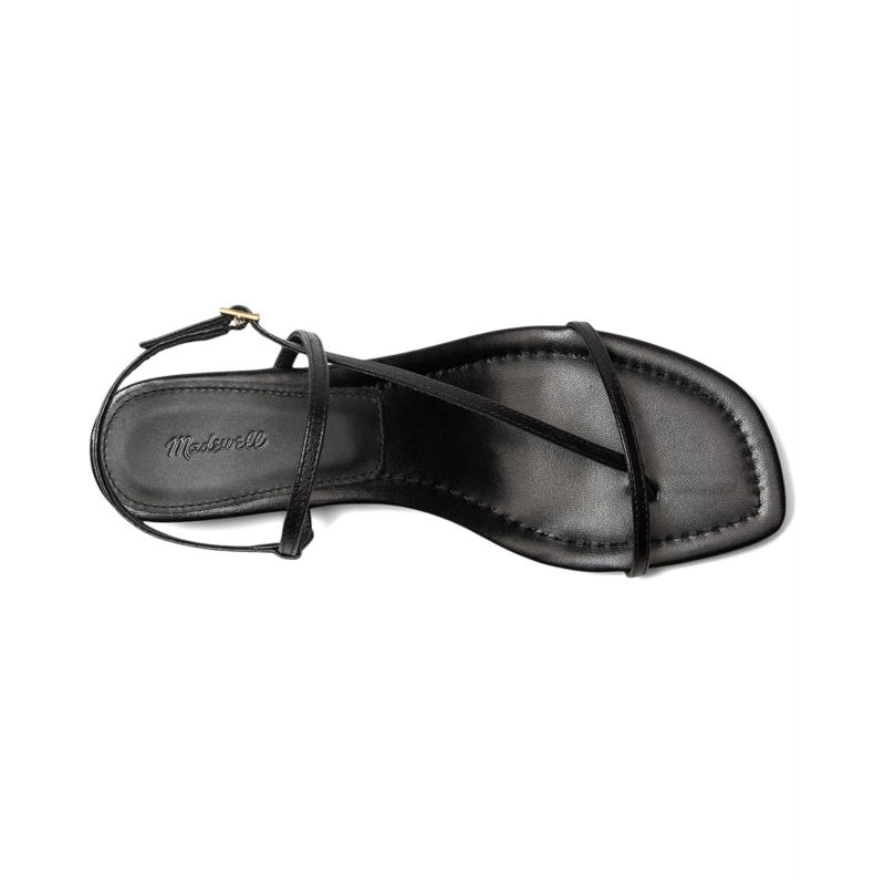 - Look simple yet sophisticated wearing the Madewell Tonio Strappy Sandal. Crafted from leather upper, lining, and padded insole, this pair of sandals features open square toe, an asymmetric T-strap, buckled slingback strap and walkable, tapered block heel.