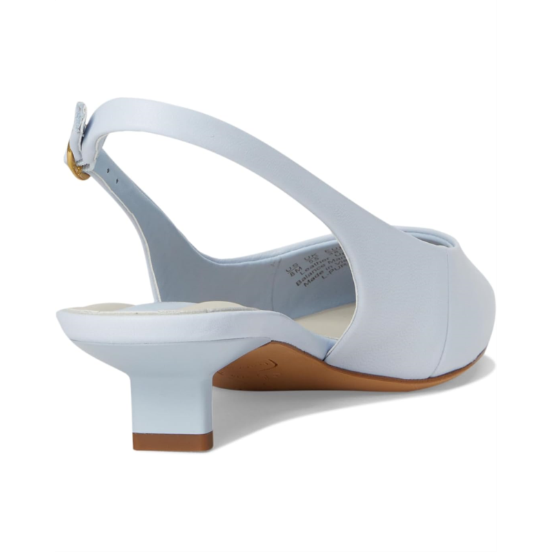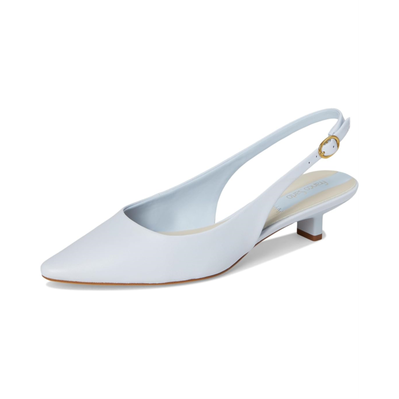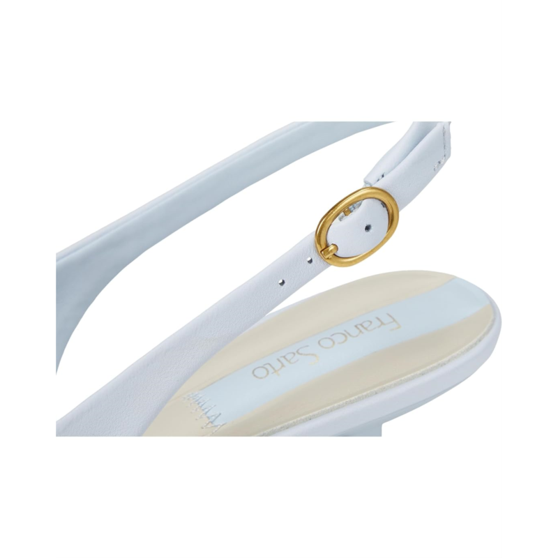 - The art of polished ease wearing Franco Sarto Pura Slingback Shoes. Crafted with a luxurious leather upper and insole, these slingbacks strike the perfect balance of sophistication and ease. The chic pointed toe creates an elegant silhouette that instantly refines any ensemble, while the buckle slingback strap ensures a secure, tailored fit. A low, sculpted architectural heel offers stylish support for comfort seekers craving subtle lift without compromise. Finished in faux raffia with premium faux leather lining, the refined texture delivers timeless appeal. The flexible TPR outsole and cemented construction provide long-lasting stability.