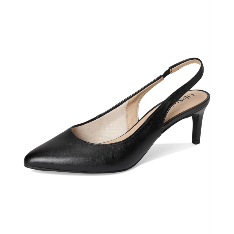 - The classic slingback with a modern twist. Wear these comfortable women''s heels and take on your day with confidence. Faux leather or microfiber upper, softly pointed toe, and slingback strap with built-in stretch for the perfect fit.