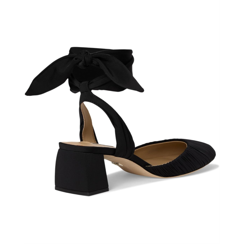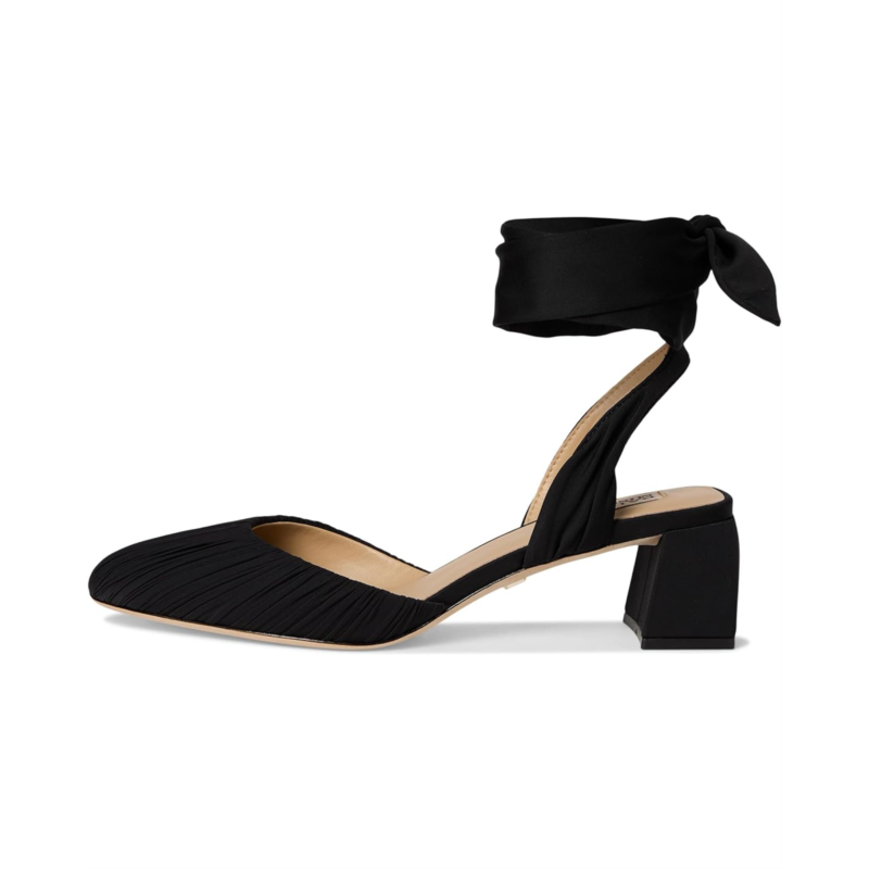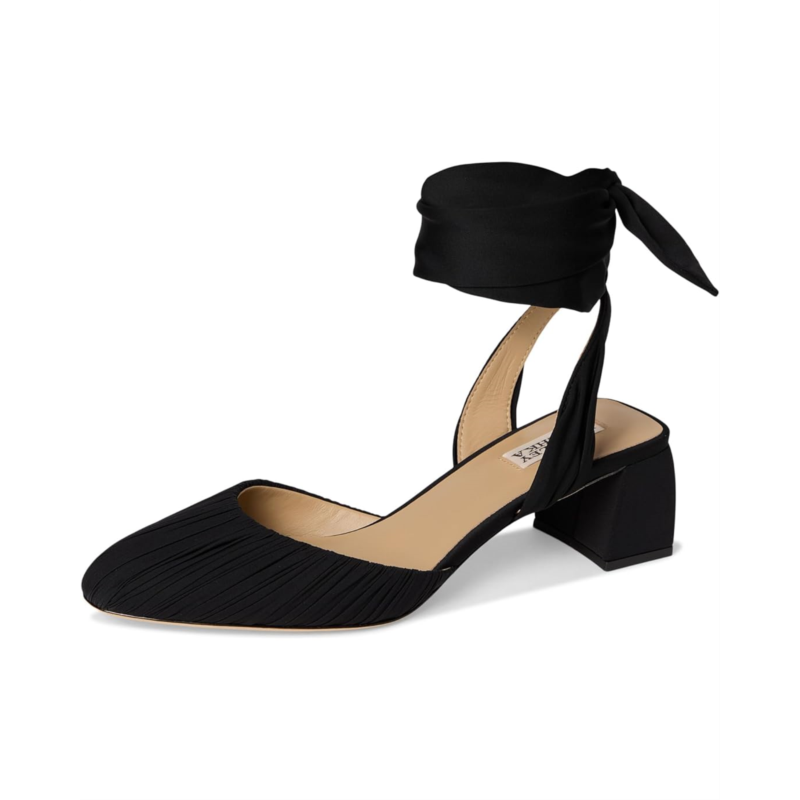 - The Badgley Mischka Ofelia is your statement-making block heel pump designed to elevate every step with modern glamour and timeless sophistication. Wrapped in a sumptuous silk upper, it delivers a radiant sheen that instantly transforms any look, while the premium leather lining, insole, and outsole keep your stride cushioned, breathable, and undeniably comfortable from day to night. The chic block heel offers stable height that flatters without fatigue, making it perfect for weddings, soirees, special occasions, or simply owning the moment. Featuring a stylish and graceful ankle wrap, this pump hugs your foot with a secure, flexible fit that moves with you effortlessly.