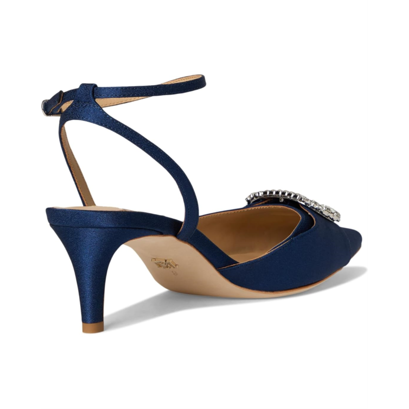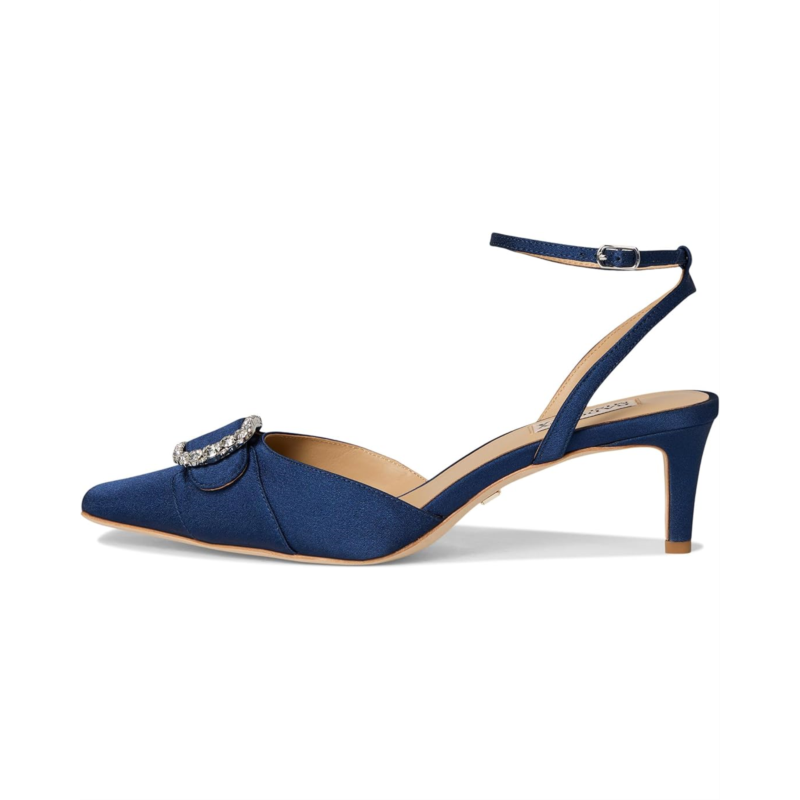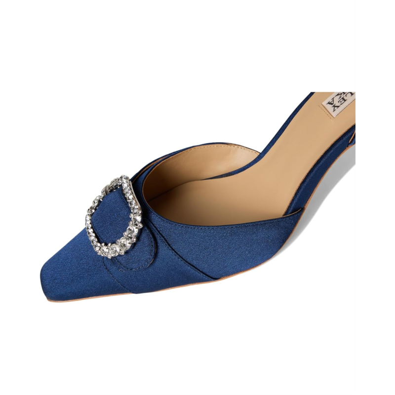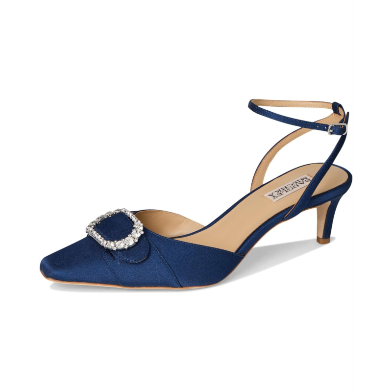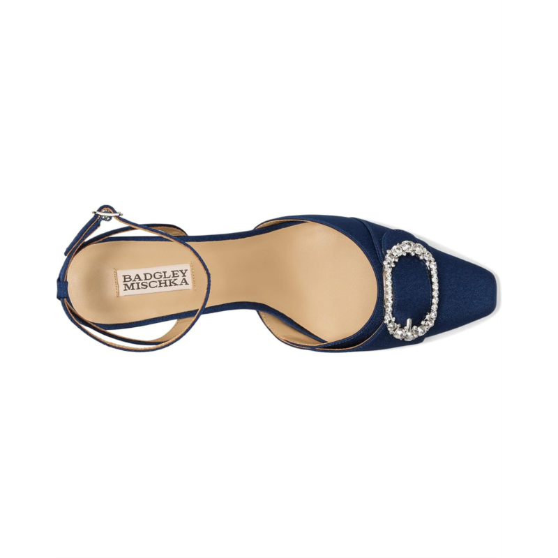 - The Badgley Mischka Odesza is a glamorous kitten heel sandal designed with a crystal-adorned vamp and an adjustable buckle closure.