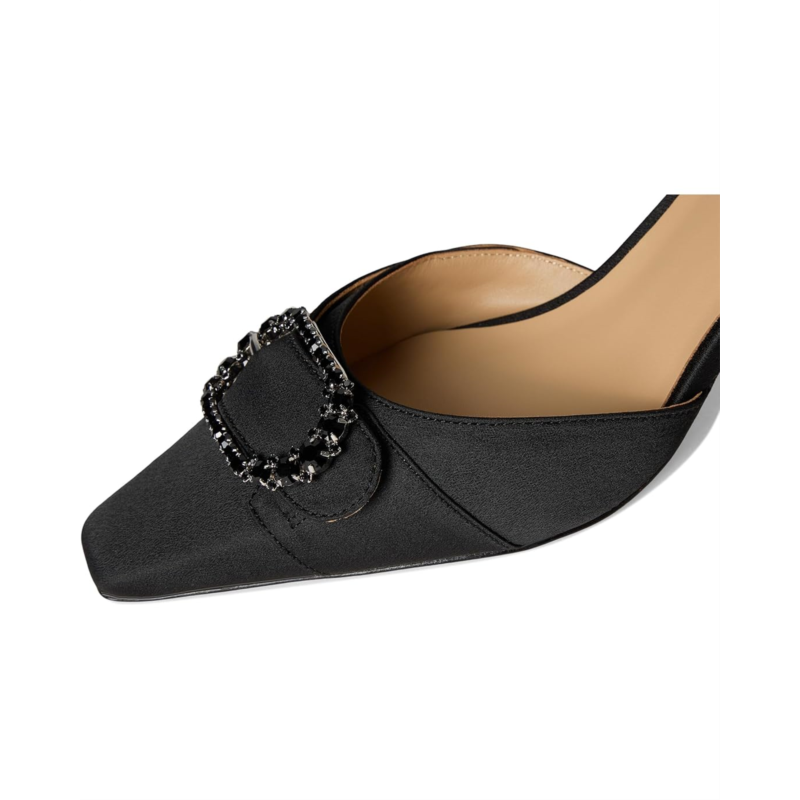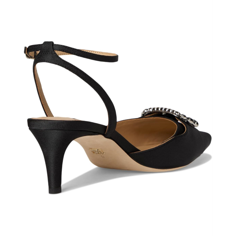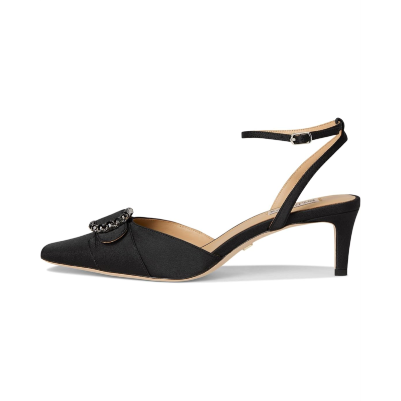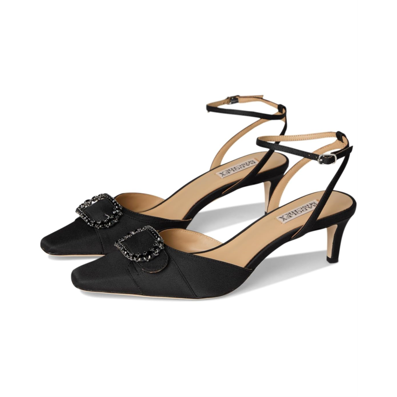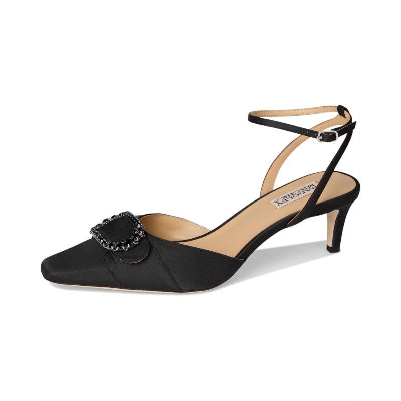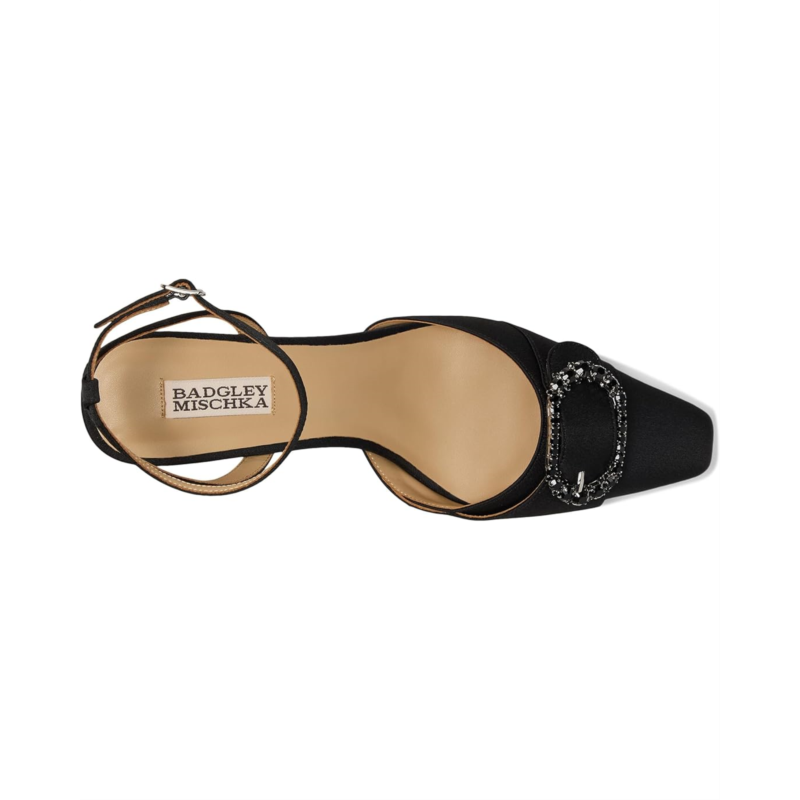 - The Badgley Mischka Odesza is a glamorous kitten heel sandal designed with a crystal-adorned vamp and an adjustable buckle closure.
