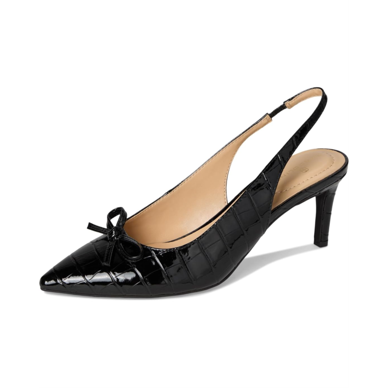 - The Bandolino Shane slingback pumps are both feminine and sophisticated. Strike a pose in this beautiful classic slingback silhouette with a feminine bow detail. The polyurethane upper of these sandals features an adjustable buckle strap for a secure fit. These heeled pumps are crafted with a foam footbed and man-made lining that make them comfortable to wear for long hours. From getting ready for work to going out for a date, these heeled sandals are the perfect footwear choice.