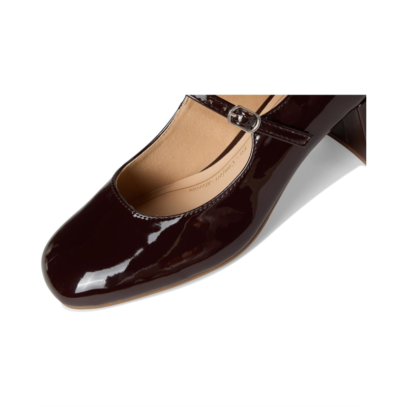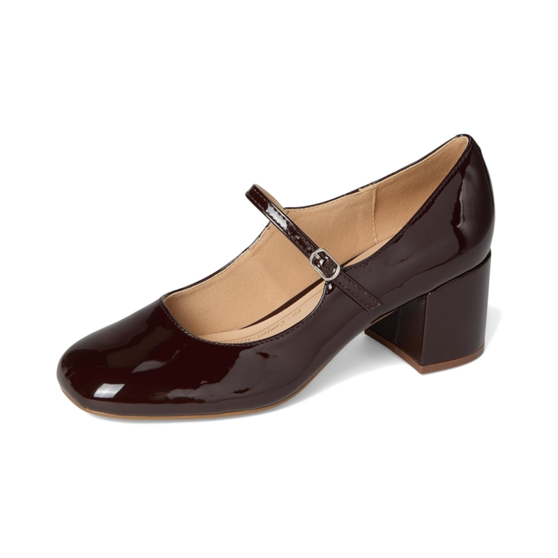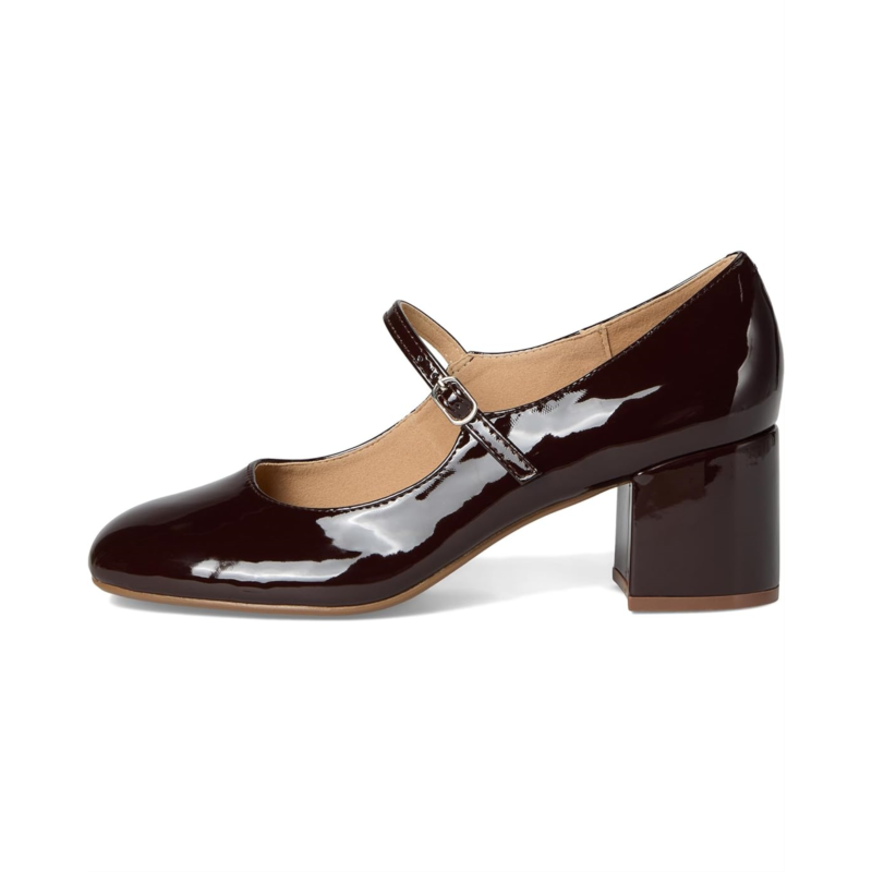 - The Journee Collection Okenna heels will have your feet feeling more comfortable than ever while still giving you all the style you''ve been looking for. The insole offers support, and the patent vegan leather and covered block heel make them super chic. A mary janekoread strap tops the design for a vintage look.