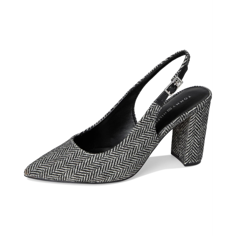 - This gorgeous Tommy Hilfiger Azalee pointy toe slingback is on a wearable block heel to complement any outfit, either for work or play. It is the must-have dress style for the season! The logo is subtly located on the buckle for the perfect attention to detail. Must have for your closet!