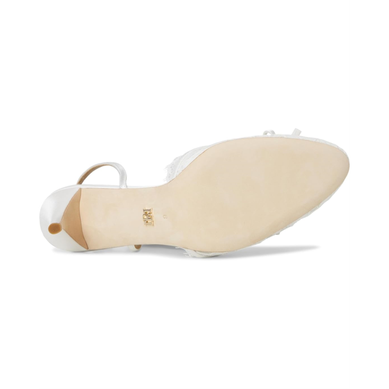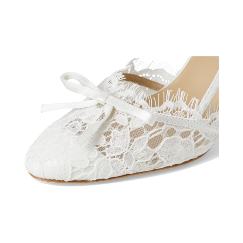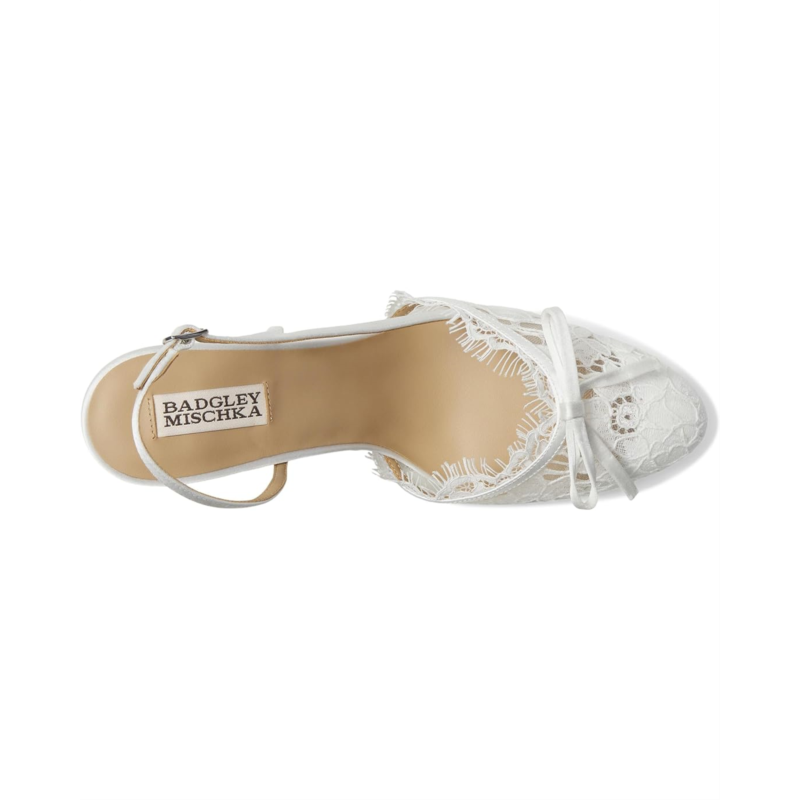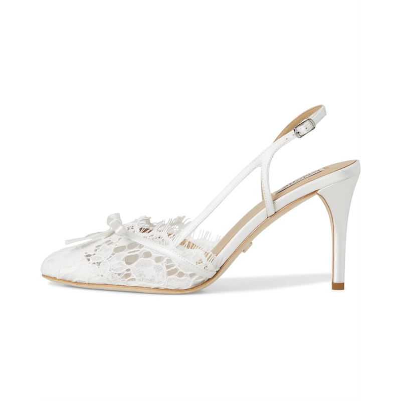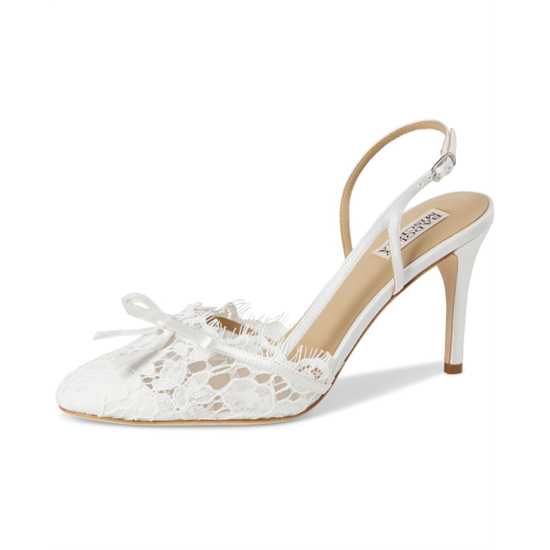 - Complete your look wearing the Badgley Mischka Oakville, an exquisite lace slingback pump built for making memorable statements. Crafted with a luxurious silk upper and adorned with a romantic bow accent, this statement piece redefines timeless femininity. The buckle strap closure ensures a secure, graceful fit, while the sleek stiletto heel elongates your silhouette with effortless allure. Inside, the leather lining, insole, and outsole provide plush comfort and refined craftsmanship, creating a flawless balance between glamor and wearability.