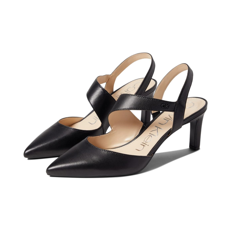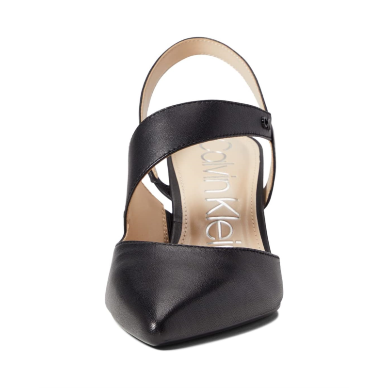- The Calvin Klein Larin adds a touch of elegance to your everyday style with a strap that curves across the instep and continues to the heel.