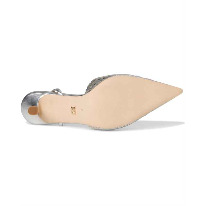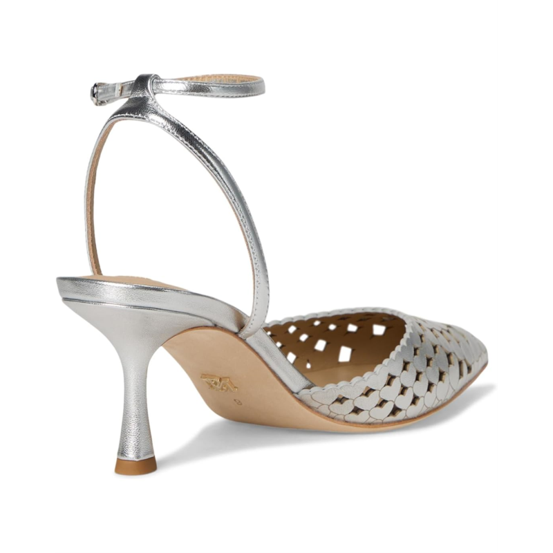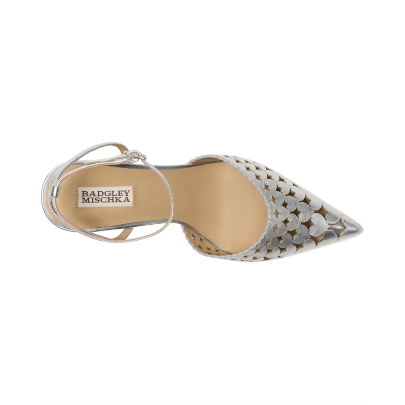 - The Badgley Mischka Omelia is a sophisticated ankle-strap pump crafted in sleek patent leather. It features a pointed toe and a beautifully designed vamp. A slim ankle strap with buckle closure ensures a secure fit, while the kitten heel offers graceful lift without compromising comfort.