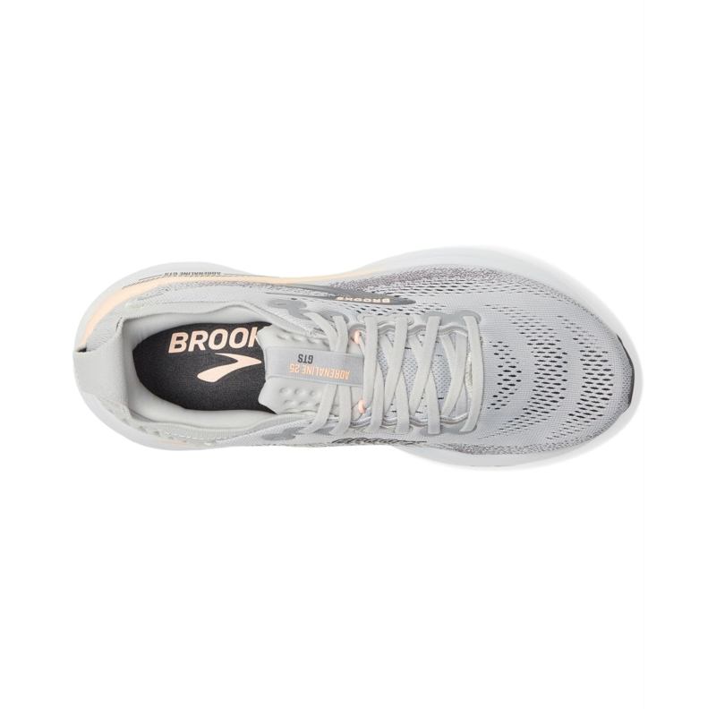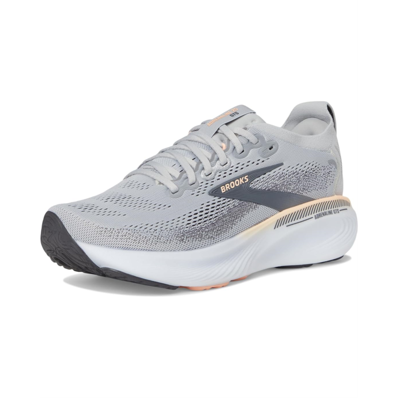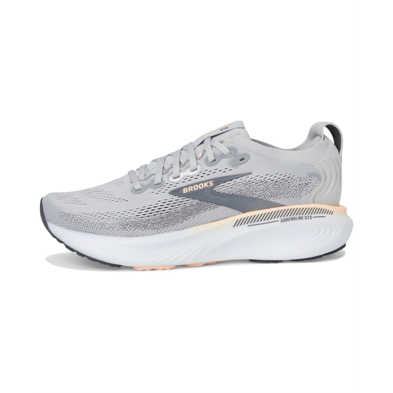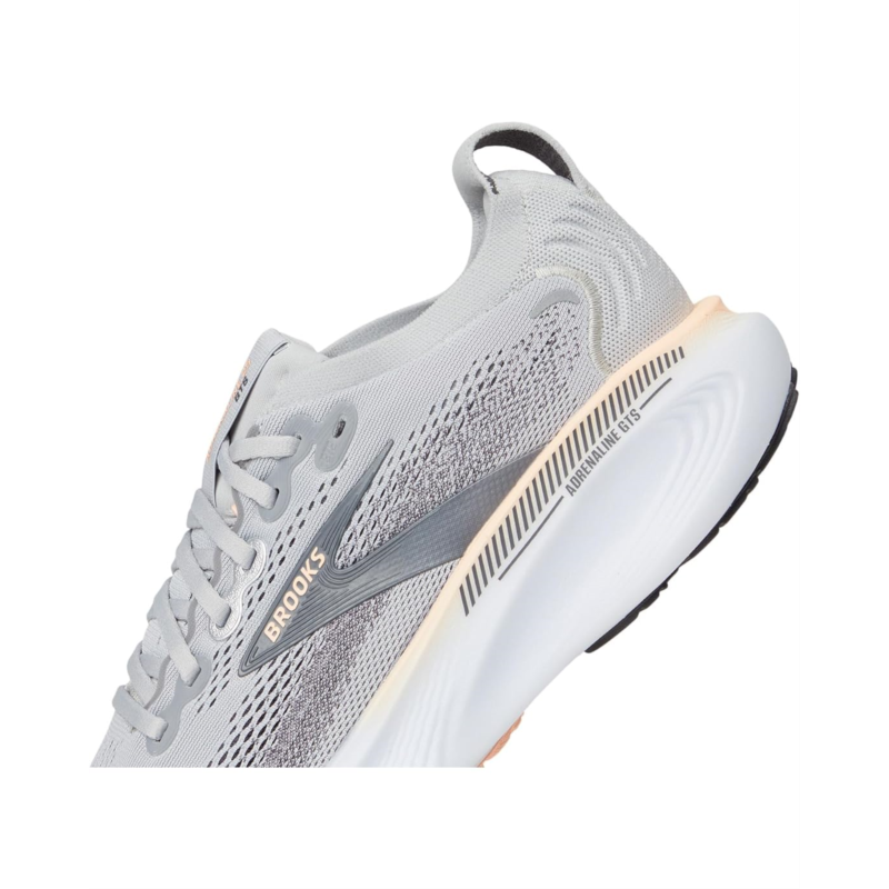 - The Brooks Adrenaline GTS 25 shoe features a 3 mm of added DNA LOFT v3 cushioning in the forefoot and 1 mm in the heel, enhancing comfort and responsiveness. The nitrogen-infused DNA LOFT v3 midsole delivers lightweight softness and dynamic energy return, while the GuideRails support system helps reduce excess movement from heel to knee, promoting a smoother stride. The shoes engineered mesh upper and flatknit collar offer a secure, breathable fit, making it ideal for runners seeking a balance of support and plush cushioning. With its 10 mm offset, the Adrenaline GTS 25 maintains the trusted geometry of its predecessors while improving underfoot feel for distraction-free miles.