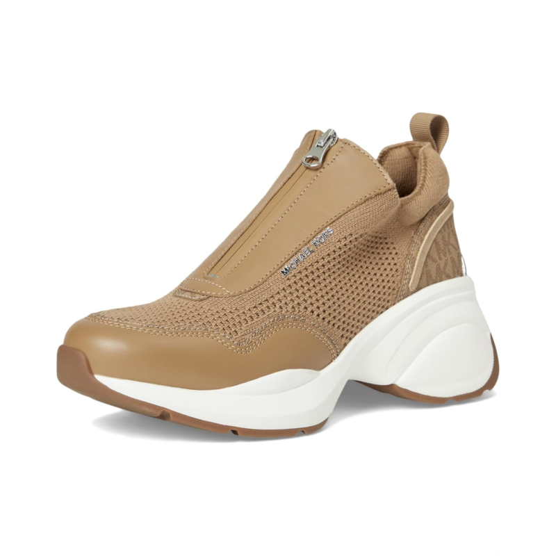 - The MICHAEL Michael Kors Zuma Slip-On Trainer redefines casual fashion with a modern twist, blending comfort and elevated style in every step. Designed with a breathable cotton knit upper, this trainer keeps your feet cool while the polyester lining and faux leather insole add a touch of luxe comfort. The sleek zippered front closure and back pull tab ensure easy entry, so slipping into your new favorite pair is effortless. Set on a built-up wedge outsole, it delivers just the right amount of lift for a flattering silhouette while maintaining all-day wearability. The durable rubber outsole keeps your stride grounded, while the fashion-forward design transitions seamlessly from athleisure to street style.