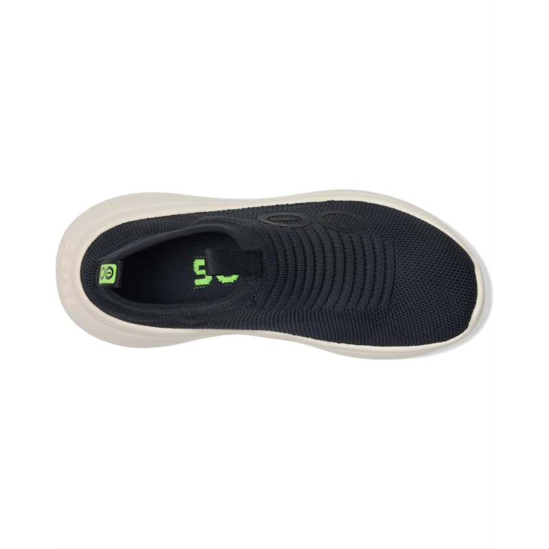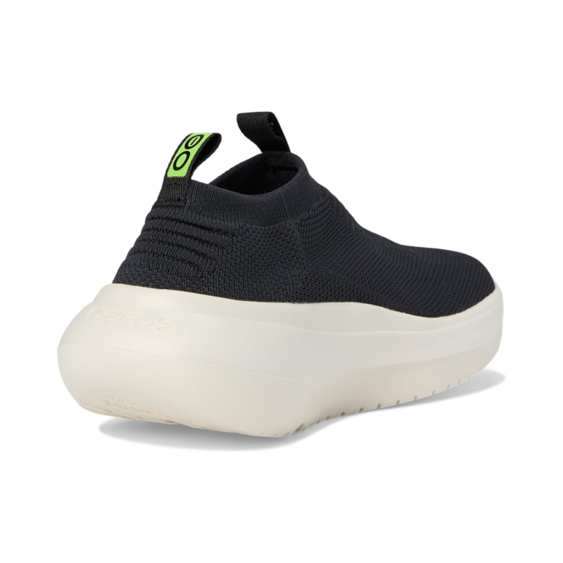 - OOFOS Oomy Zen sneakers are designed to transcend comfort with every step. Crafted from seamless knit upper, rounded, cupped heel, and a subtle rocker shape to support natural gait and joint alignment. The low-top style features nylon upper, foam lining, and insole. Recovery Footwear is designed to support the arch and relieve pressure on the feet and legs.