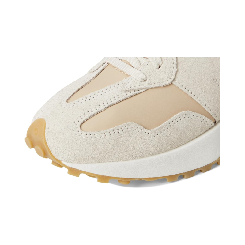 - Exude sporty vibes as you head out for fun and games wearing New Balance Classics 327 Sneakers, crafted in a retro-inspired style with oversized brand logo detail in contrasting color for elevated style. The sneakers come with a suede & mesh upper featuring exaggerated fang design, leather lining, split eyerow, and leather insole. The lace-up closure on the sneakers is designed for easy adjustability.
