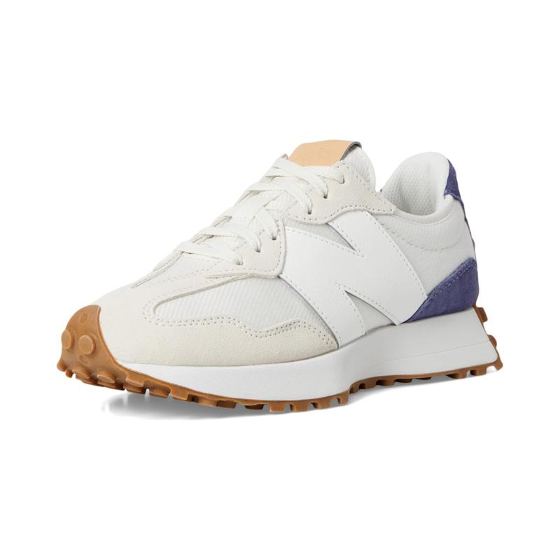 - Exude sporty vibes as you head out for fun and games wearing New Balance Classics 327 Sneakers, crafted in a retro-inspired style with oversized brand logo detail in contrasting color for elevated style. The sneakers come with a suede & mesh upper featuring exaggerated fang design, leather lining, split eyerow, and leather insole. The lace-up closure on the sneakers is designed for easy adjustability.