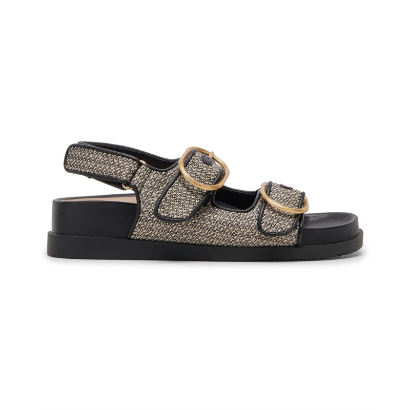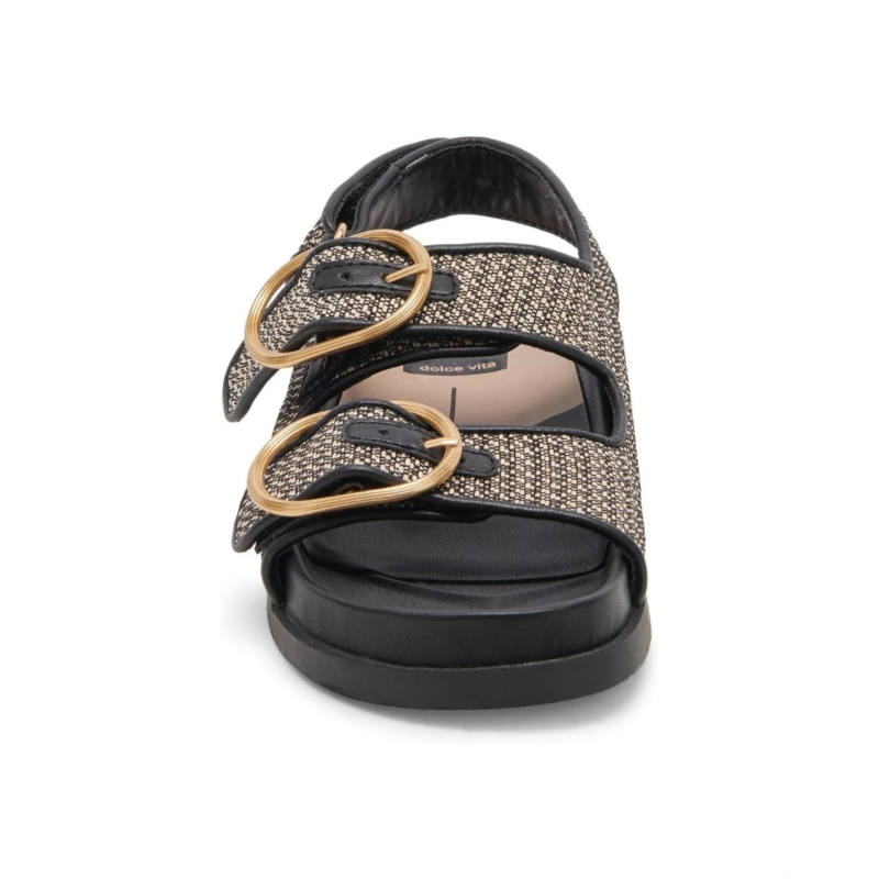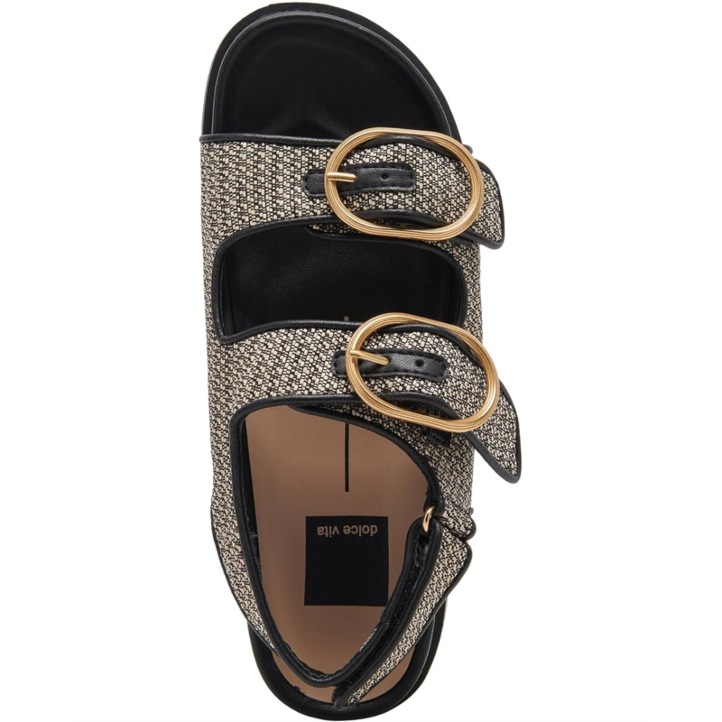 - Flaunt your comfortable and chic look wearing the Dolce Vita Starla. These breathable leather lining sandals feature slingback hook-and-loop with two adjustable metal buckle straps closure, open round toe design, and brand detailing on the footbed. It has a woven upper and contoured footbed.