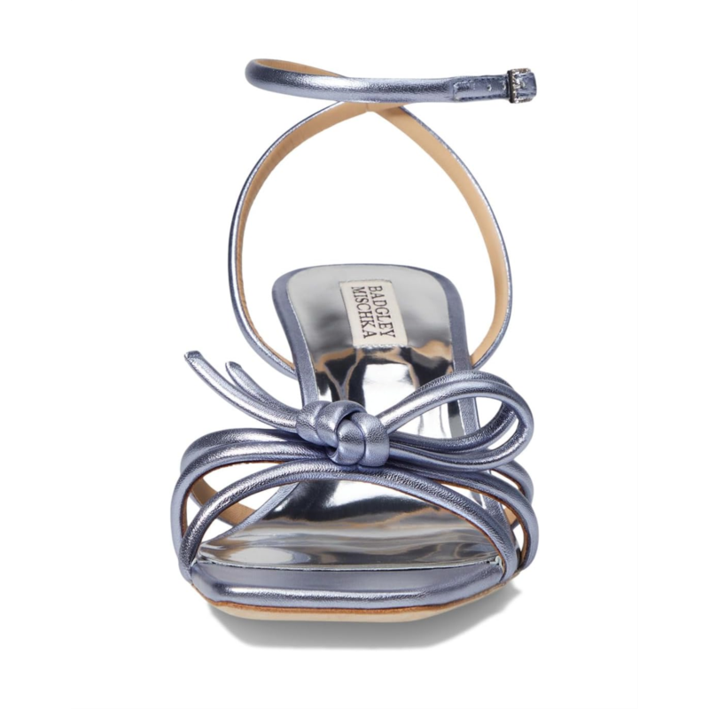 - Add a charm to your party-wear looks by complementing them with Badgley Mischka Loyalty Sandals that feature an open squared toe shape and knotted strappy details. The sandals are designed with a leather upper, breathable leather lining, and a synthetic insole for enhanced comfort. The ankle strap and buckle closure is designed to give you a customizable look.