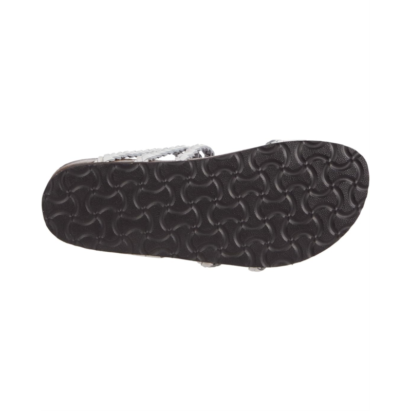 - Strappy leather upper features woven detailing.