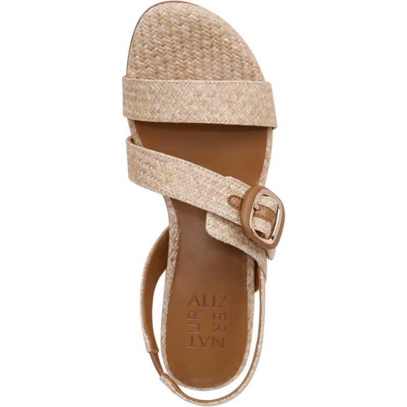 - Say hello to your new go-to shoes - the Naturalizer Meesha2 Slingbacks! Crafted with a basket-weave upper and a bio-based lining, these sandals are a perfect blend of style and sustainability. The foam insole and Contour+ Comfort technology provide enhanced cushioning and arch support.