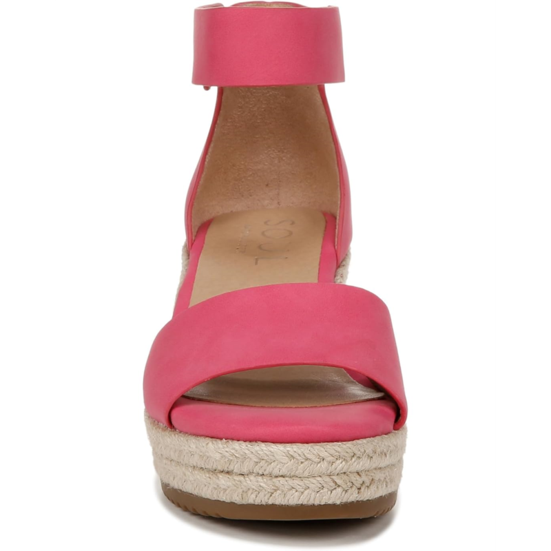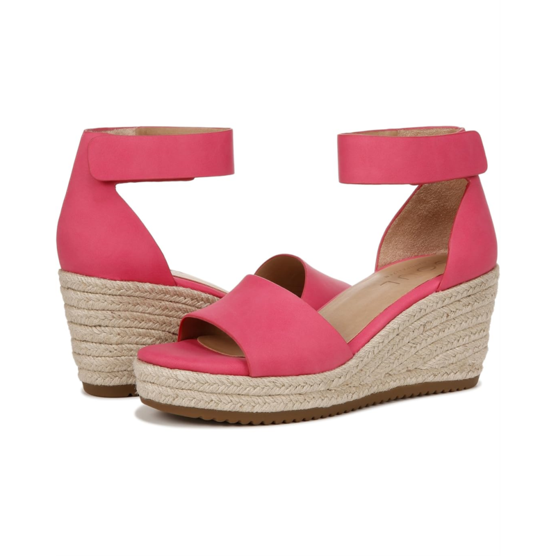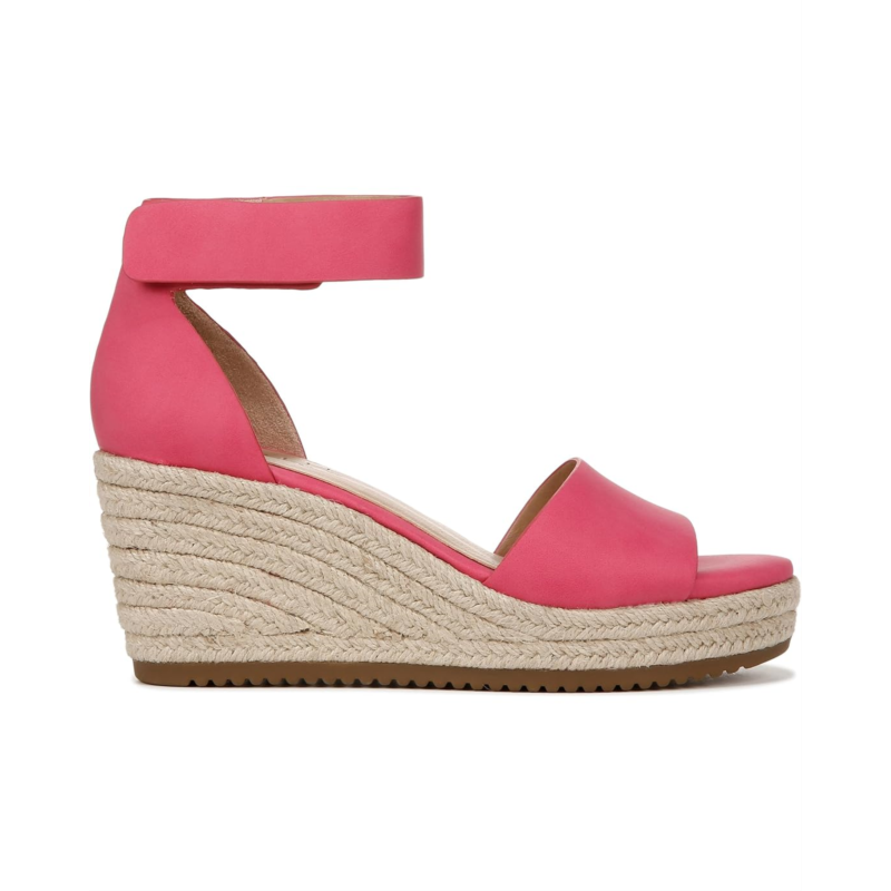 - Feel the comfort in every step wearing the Naturalizer Oakley. Crafted from man-made upper, this pair of heels features arch support with memory foam, wedge heels, peep toe design, ankle strap with adjustable hook-and-loop closure, and soft freshness-preserving sock lining. Their All-Thru Comfort soft foam lining keeps your feet comfortable all day. These espadrille wedges are designed with N5 Contour technology featuring dual density cushioning on a patented contoured footbed with arch support. All made with lightweight and breathable materials for superior comfort and support.