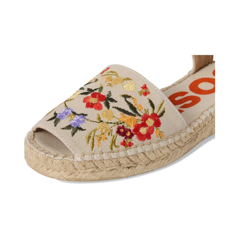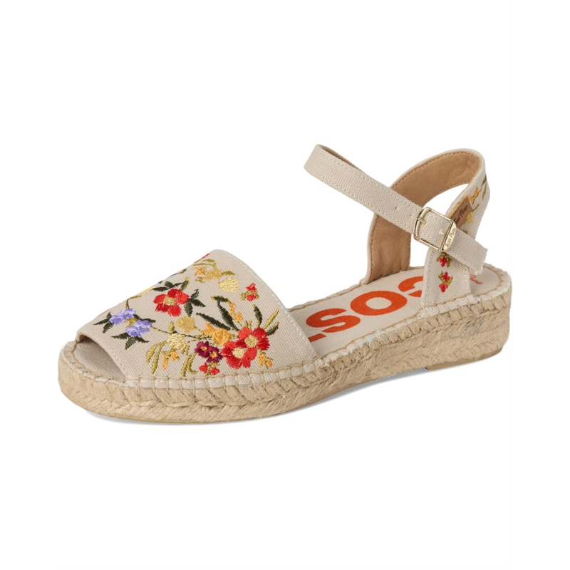 - Embody the spirit of wanderlust wearing the colorful Toni Pons Garbet Sandals. The espadrille footwear features cotton upper construction with flower embroidery, buckled ankle strap closure, and peep toe silhouette.