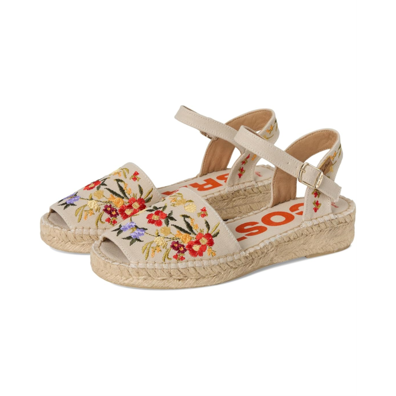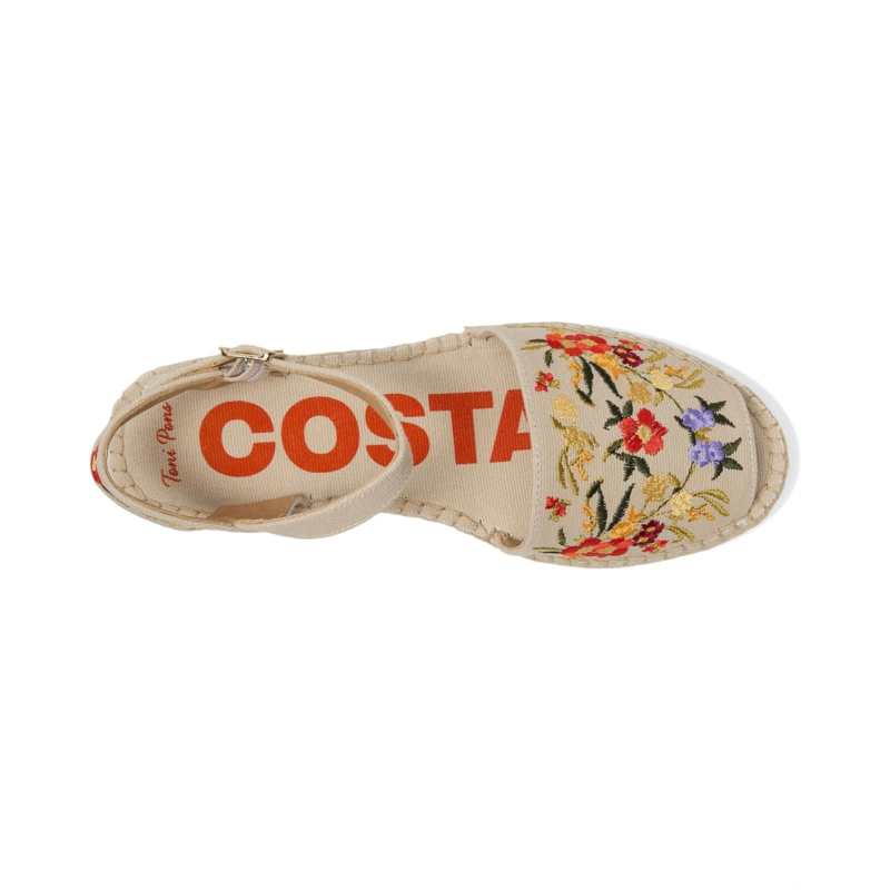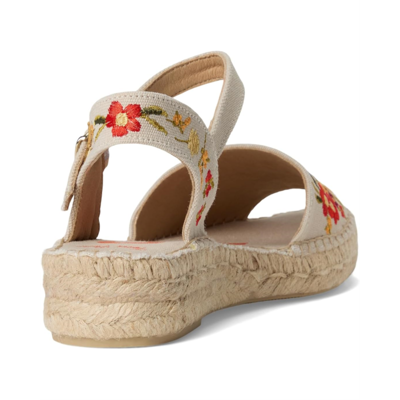 - Embody the spirit of wanderlust wearing the colorful Toni Pons Garbet Sandals. The espadrille footwear features cotton upper construction with flower embroidery, buckled ankle strap closure, and peep toe silhouette.