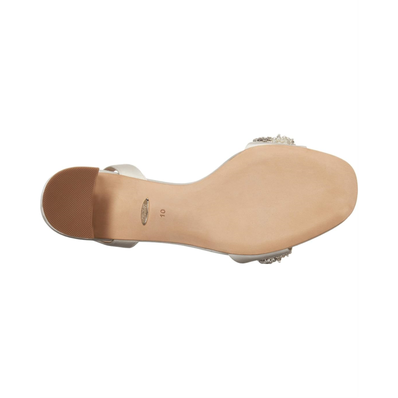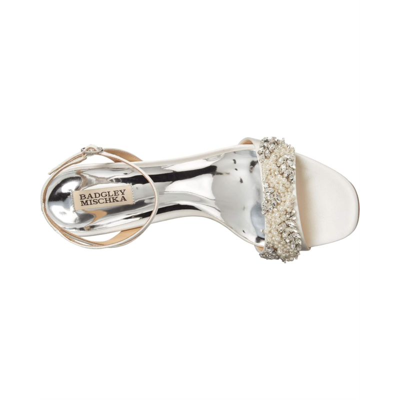 - The Jewel Badgley Mischka Clara is an essential addition to your formal attire. This dress sandal is crafted with a synthetic upper and set on a sturdy block heel, and features crystal and pearl embellishments along the toe strap.