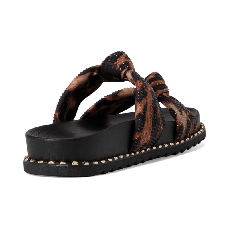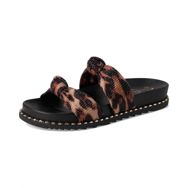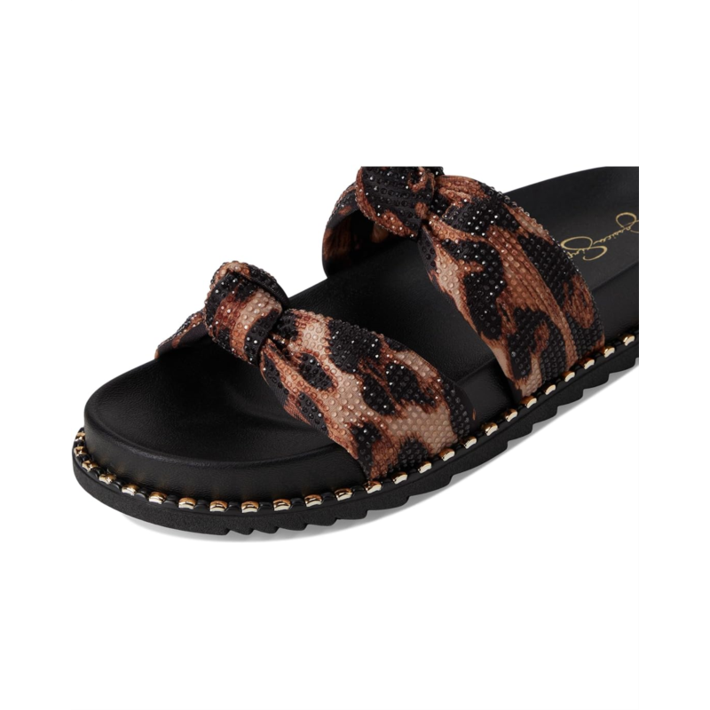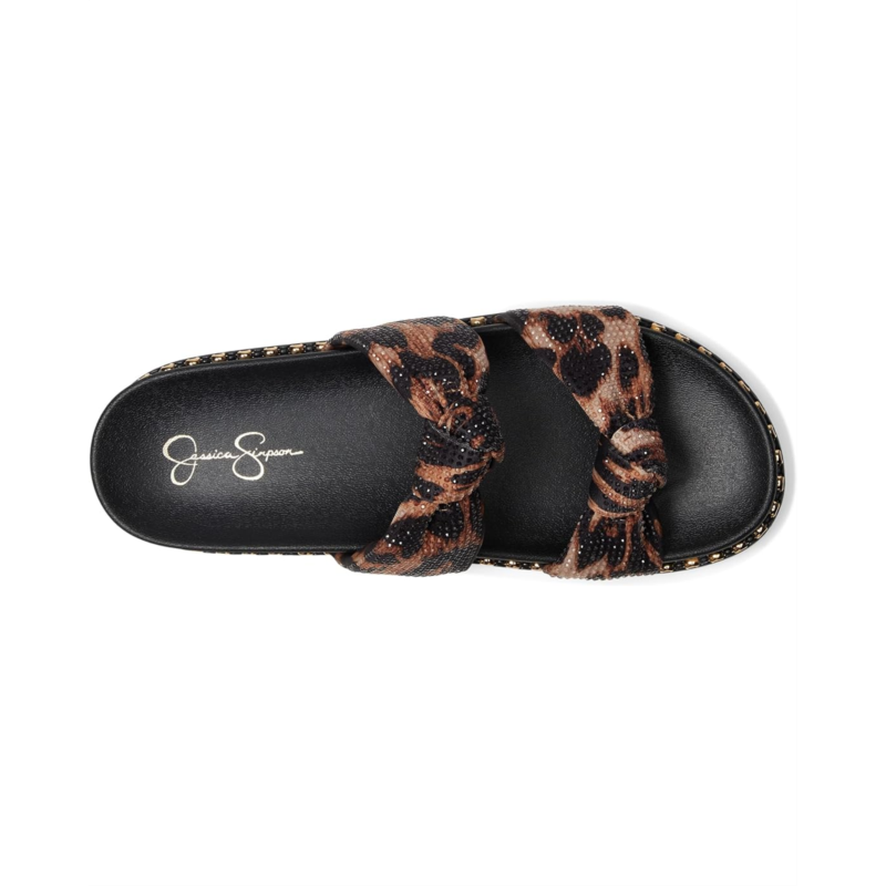 - The Jessica Simpson Caralyna Studded Knot Sandals have knotted vamp straps and glossy midsole studs that amplify the modern appeal of a slide sandal grounded by a contoured footbed and textured rubber outsole. These slide sandals are made of a cotton upper, polyester insole, and polyester lining.