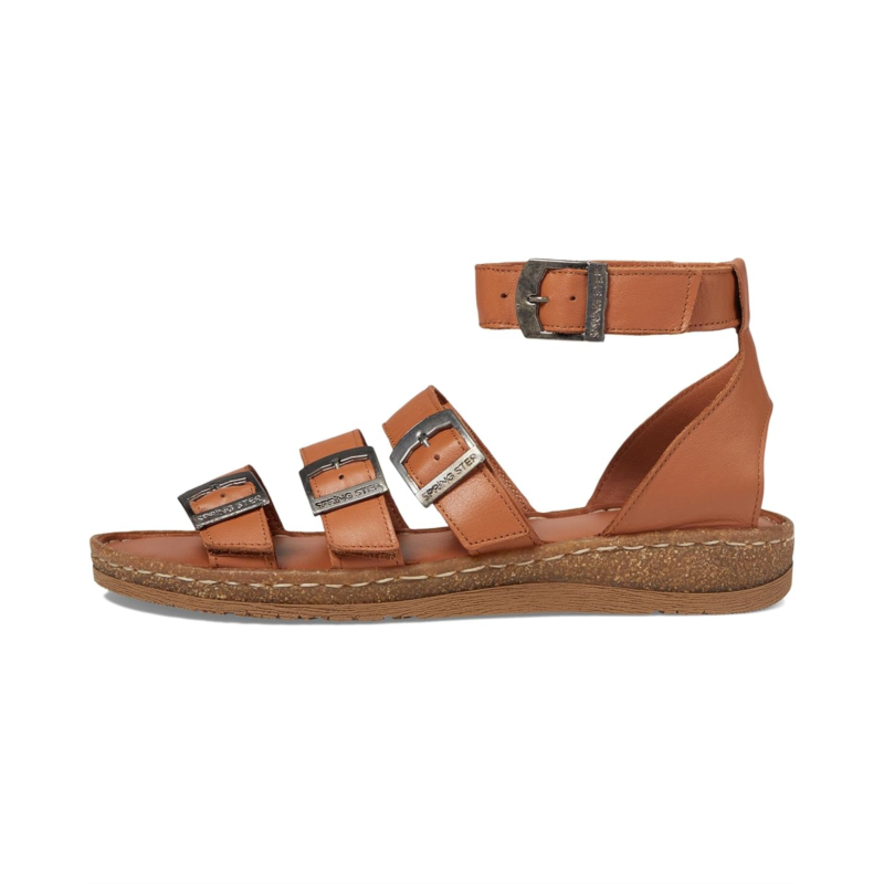 - Step into elegance by wearing the Spring Step Alexcia sandals. Crafted from luxurious leather upper, these sandals boast supple straps adorned with brushed metal buckles. Their adjustable hook-and-loop closure ensures a perfect fit. With a leather lining and insole, comfort meets style effortlessly.
