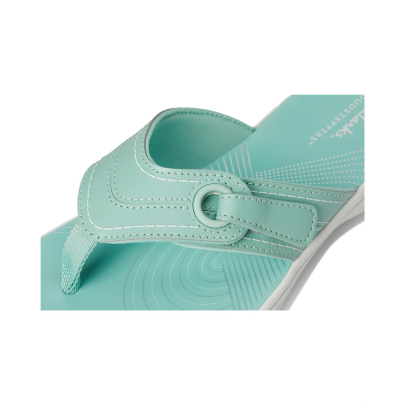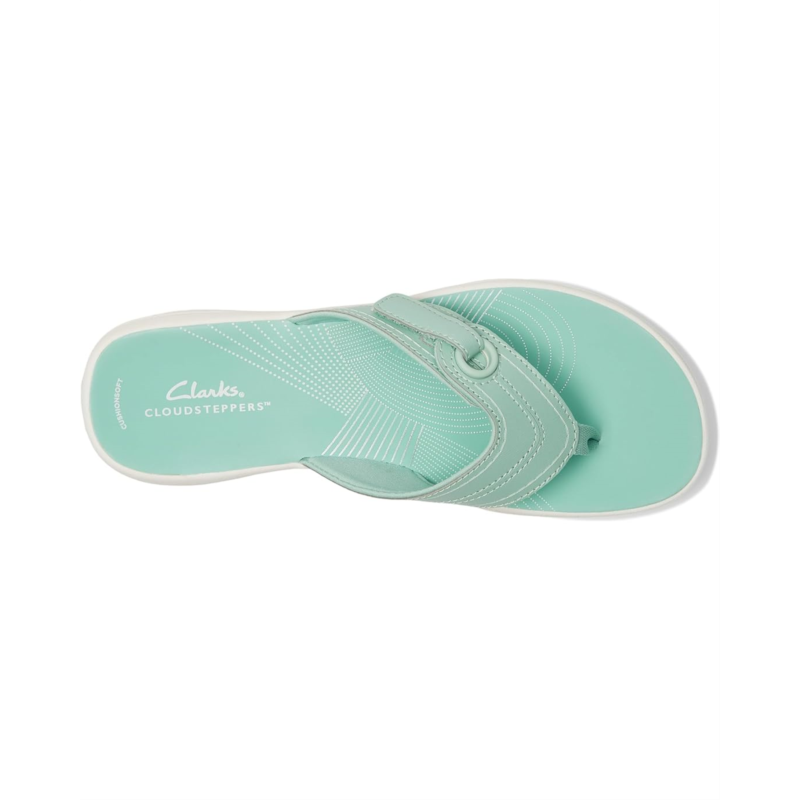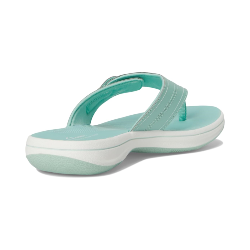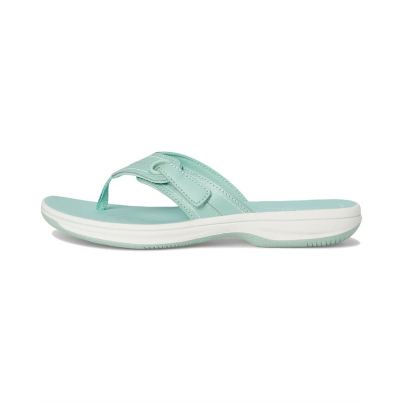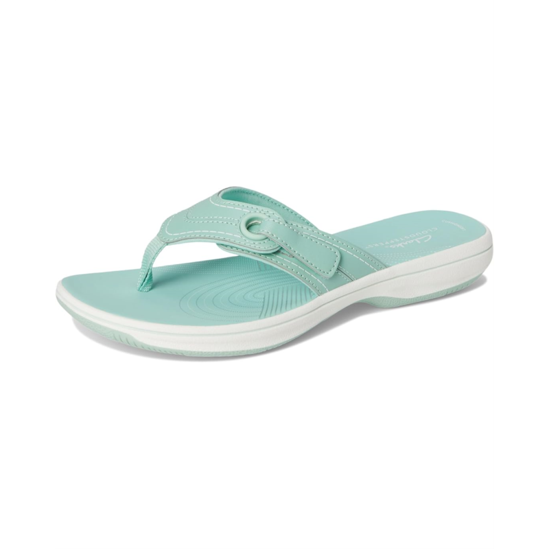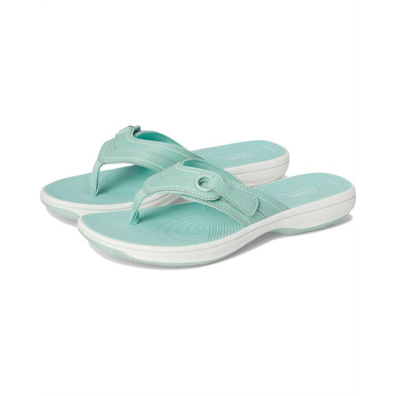 - The Clarks Breeze Reyna sandals are part of the Clarks Cloudsteppers collection, so you know that total underfoot comfort is a sure thing. Built for summer holidays and lazy weekends in the back garden, these flip-flops are crafted with a soft nylon upper for a skin-gentle feel while the grippy foam outsole makes for confident support, great grip, and easy-breezy steps. Their mesh lining keeps your feet cool and comfortable. These slide slippers are designed with a cushion Soft PU foam footbed that delivers shock absorption and comfort.