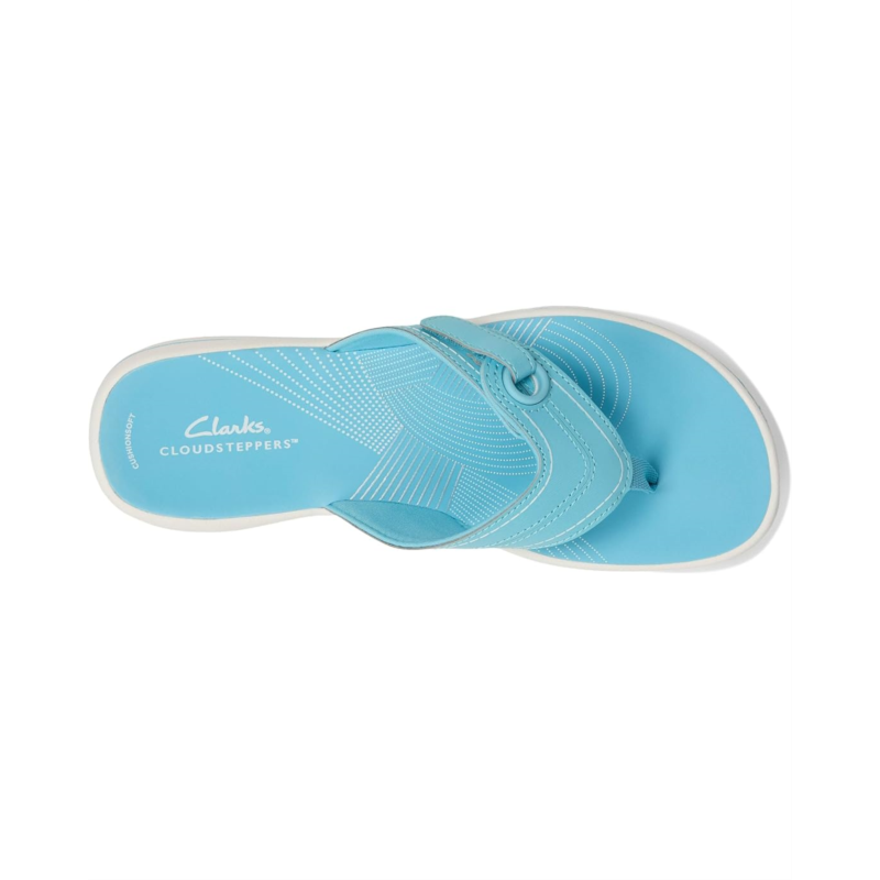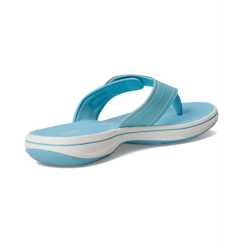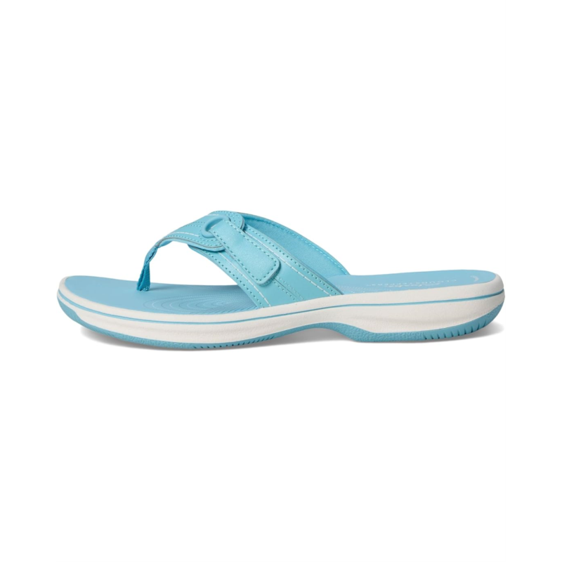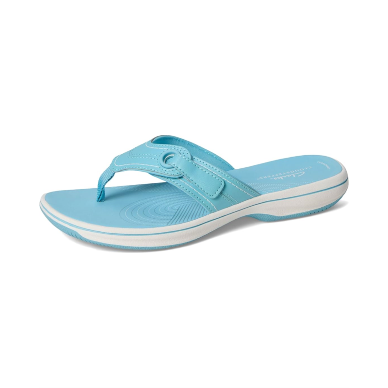 - The Clarks Breeze Reyna sandals are part of the Clarks Cloudsteppers collection, so you know that total underfoot comfort is a sure thing. Built for summer holidays and lazy weekends in the back garden, these flip-flops are crafted with a soft nylon upper for a skin-gentle feel while the grippy foam outsole makes for confident support, great grip, and easy-breezy steps. Their mesh lining keeps your feet cool and comfortable. These slide slippers are designed with a cushion Soft PU foam footbed that delivers shock absorption and comfort.