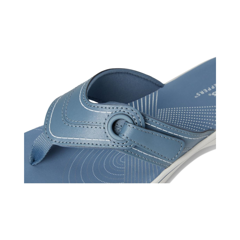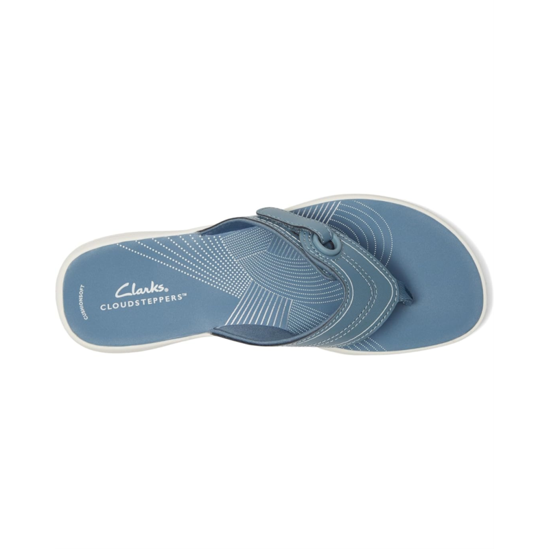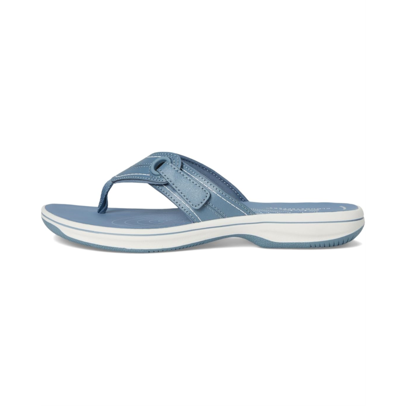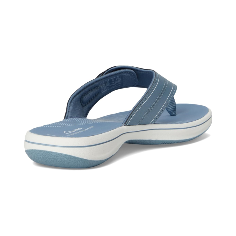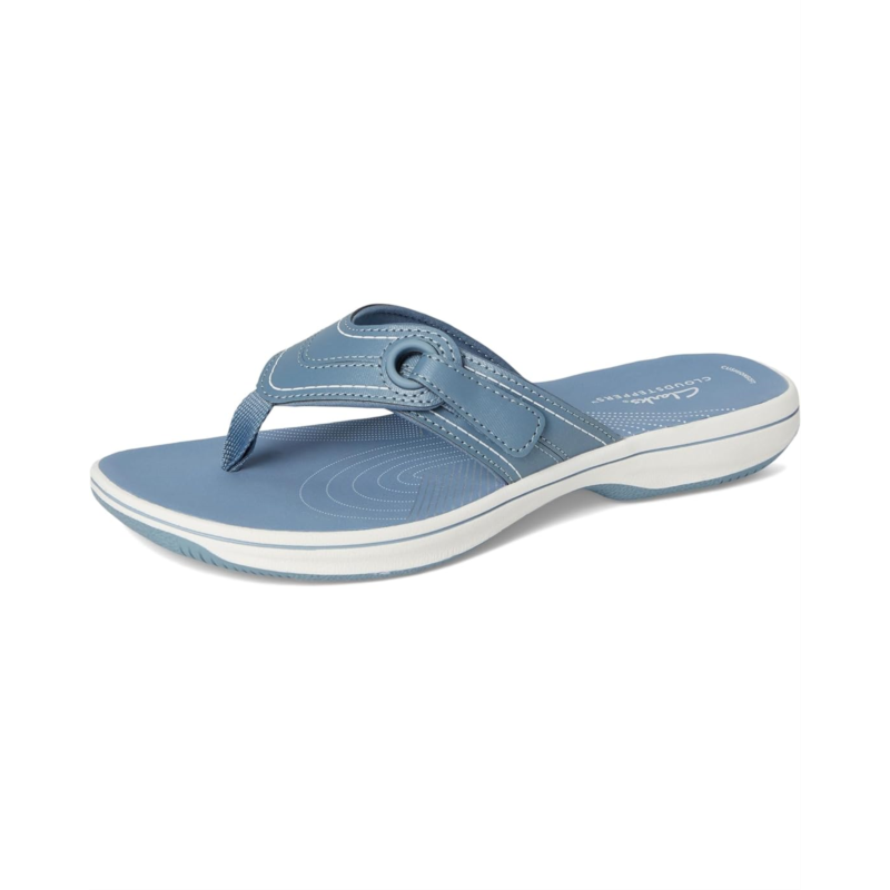 - The Clarks Breeze Reyna sandals are part of the Clarks Cloudsteppers collection, so you know that total underfoot comfort is a sure thing. Built for summer holidays and lazy weekends in the back garden, these flip-flops are crafted with a soft nylon upper for a skin-gentle feel while the grippy foam outsole makes for confident support, great grip, and easy-breezy steps. Their mesh lining keeps your feet cool and comfortable. These slide slippers are designed with a cushion Soft PU foam footbed that delivers shock absorption and comfort.