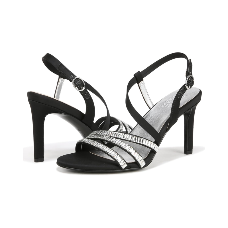 - Featuring Contour+ Comfort technology that offers all-day comfort and a premium fit, the Naturalizer Kimberly 2 sandals are perfect to pair with your party gowns and stylish dresses. The adjustable buckle closure offers a secure fit. One of the highlights of these strappy sandals is their crystal detailing on the straps that add a glamorous look. Walk with confidence and style by wearing these heeled sandals.