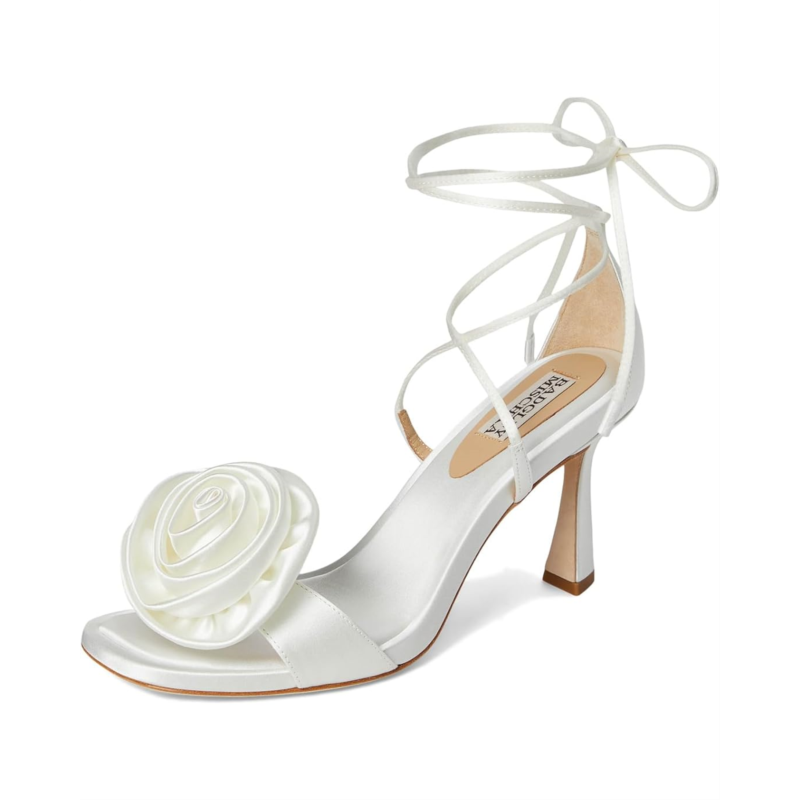 - Strappy and stylish, the Badgley Mischka Janelle is crafted from silk upper, breathable leather lining, and foam insole. This pair of strappy sandals features open round toe, big flower detailing on the vamp, tie closure, and brand detailing on the footbed.