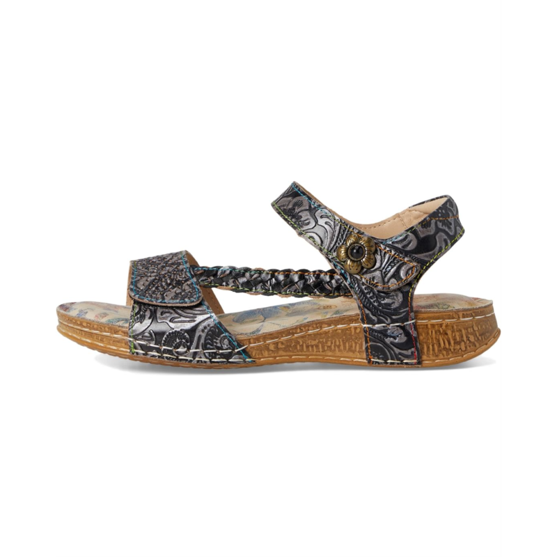 - Long walks would be perfectly easy and comfortable as you wear the L''Artiste by Spring Step Popular Flat Sandals. The corked sandal features leather upper construction, braided side strap, double hook-and-loop closure with metal embossed flower for a fashionable look.