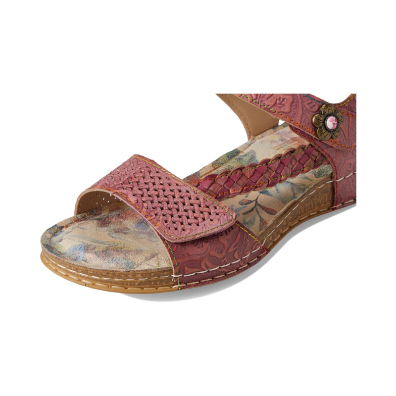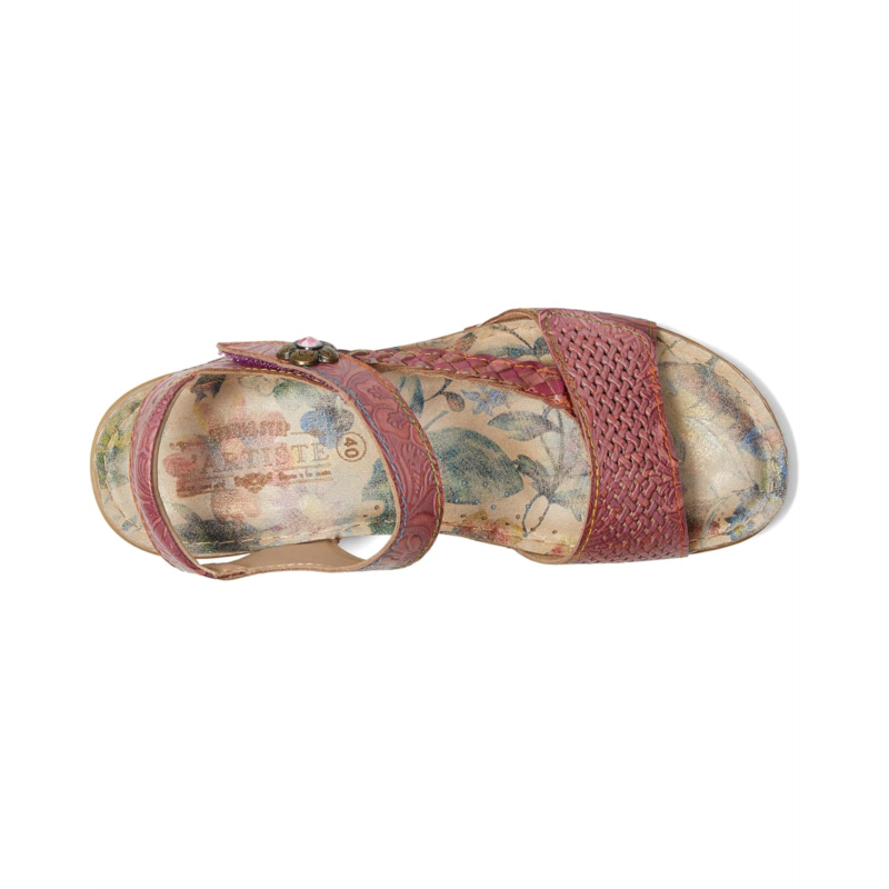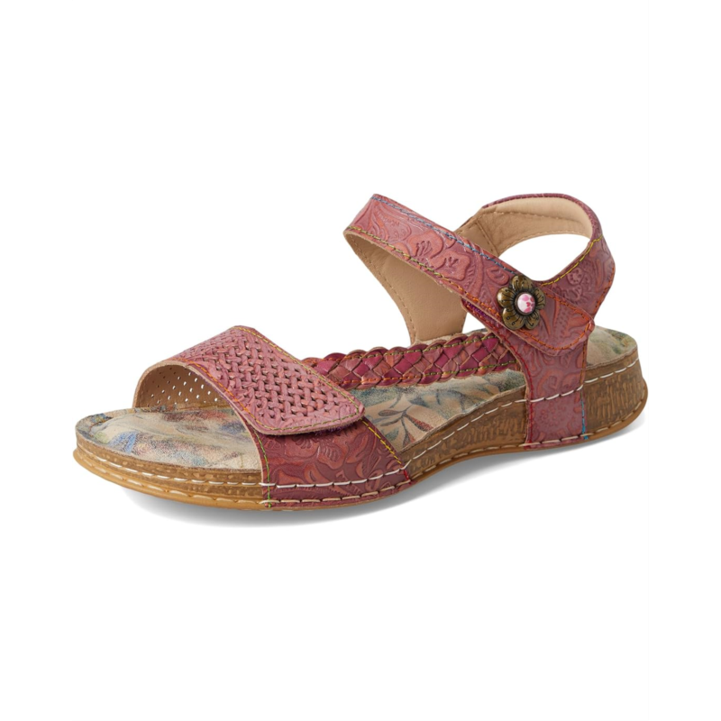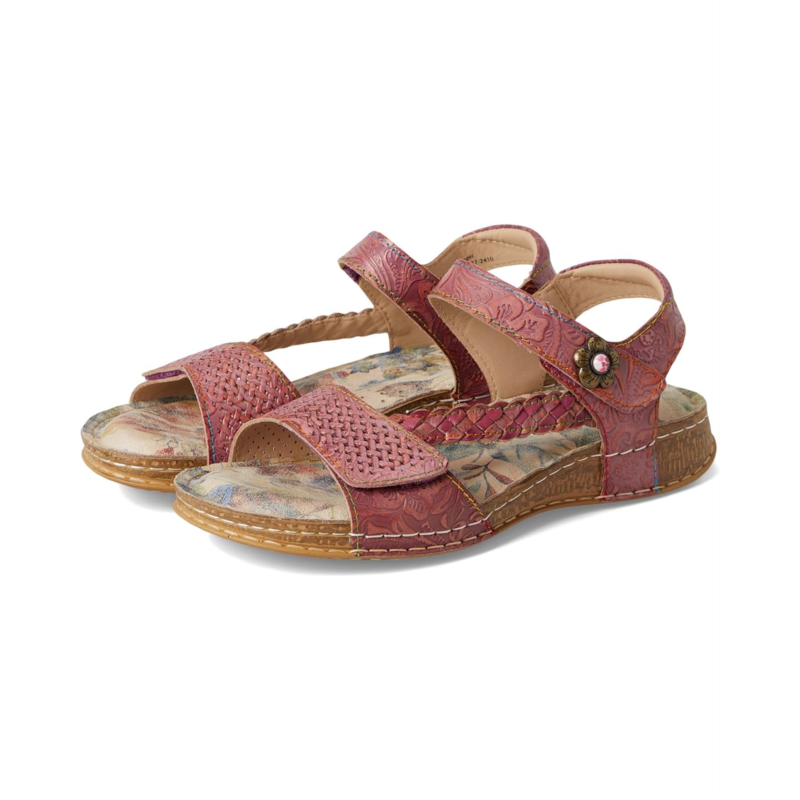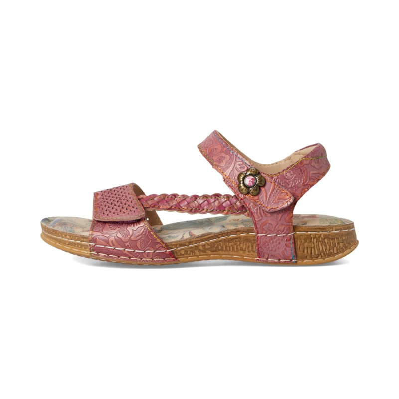 - Long walks would be perfectly easy and comfortable as you wear the L''Artiste by Spring Step Popular Flat Sandals. The corked sandal features leather upper construction, braided side strap, double hook-and-loop closure with metal embossed flower for a fashionable look.
