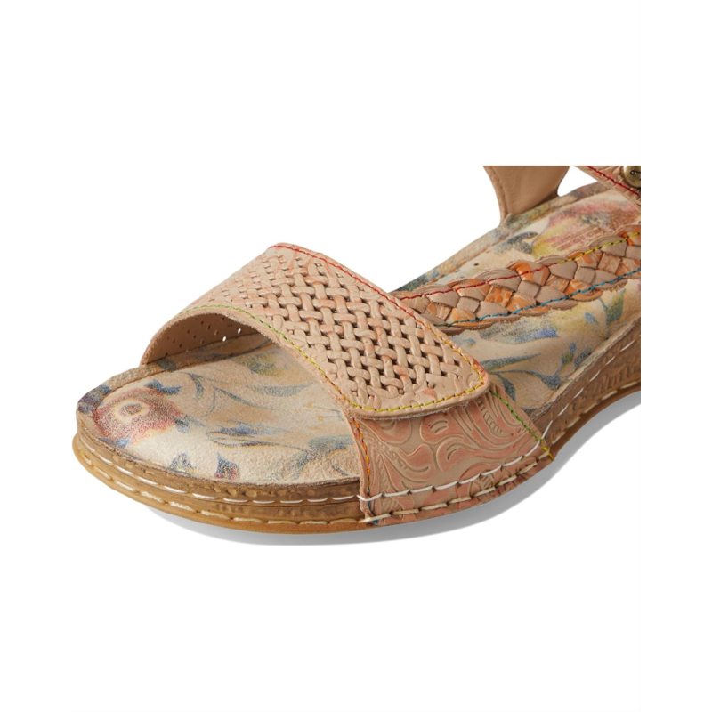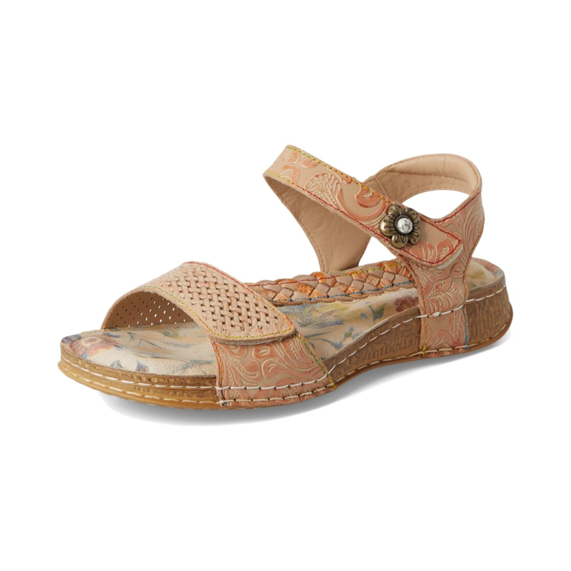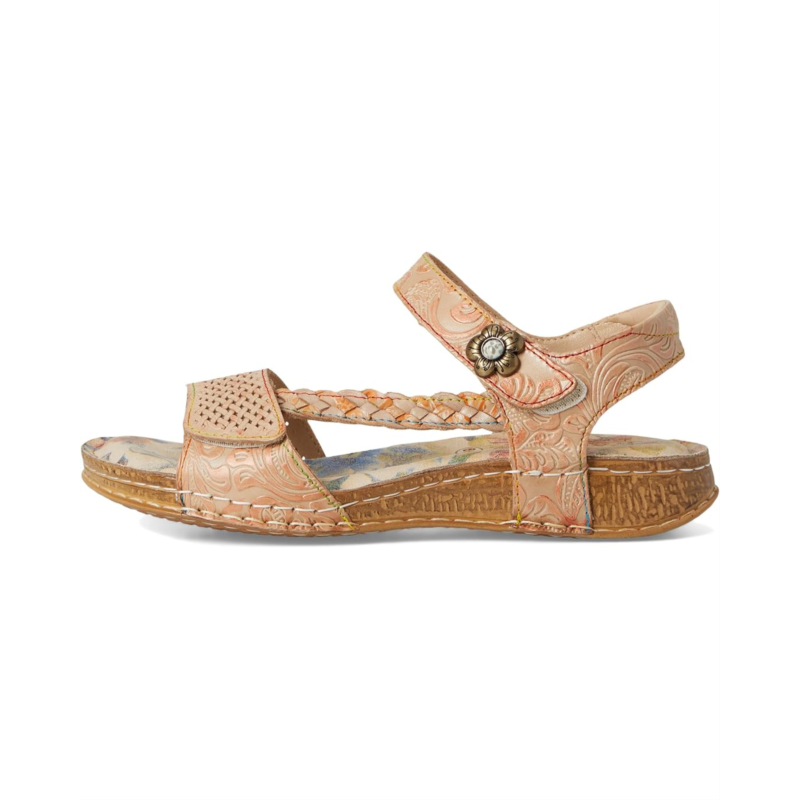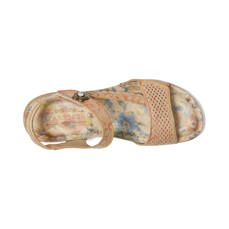 - Long walks would be perfectly easy and comfortable as you wear the L''Artiste by Spring Step Popular Flat Sandals. The corked sandal features leather upper construction, braided side strap, double hook-and-loop closure with metal embossed flower for a fashionable look.