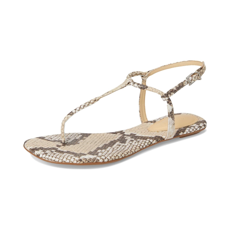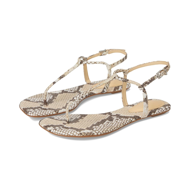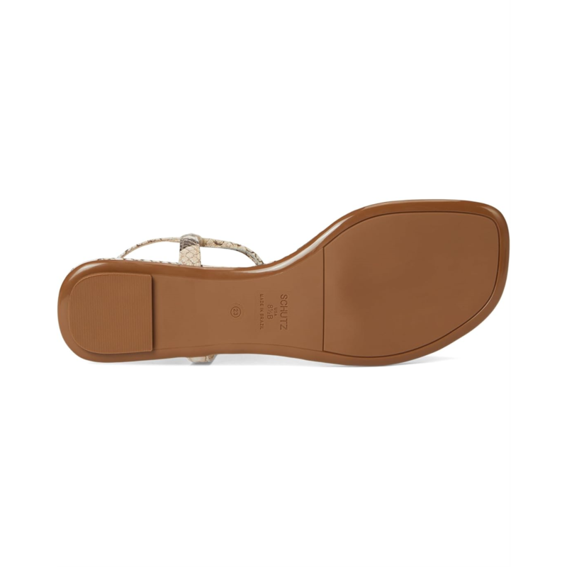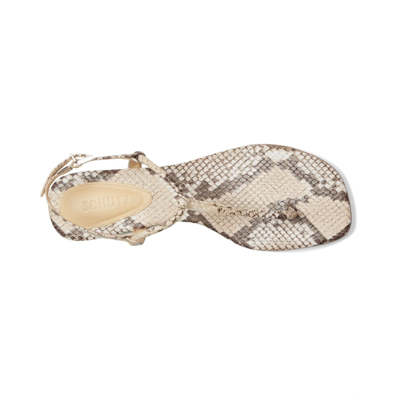- Glamorize in metallic gleam wearing the Schutz Elsha Sandals. The square toe thong features metallic leather upper with buckle adjustable slingback strap closure and toe-post strap for a comfortable hold.