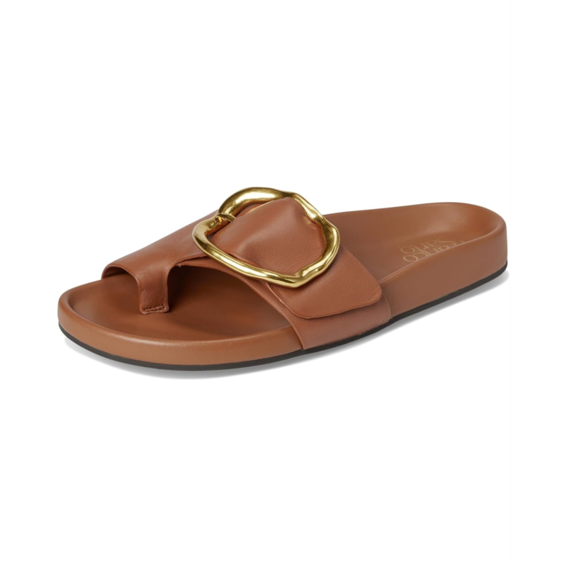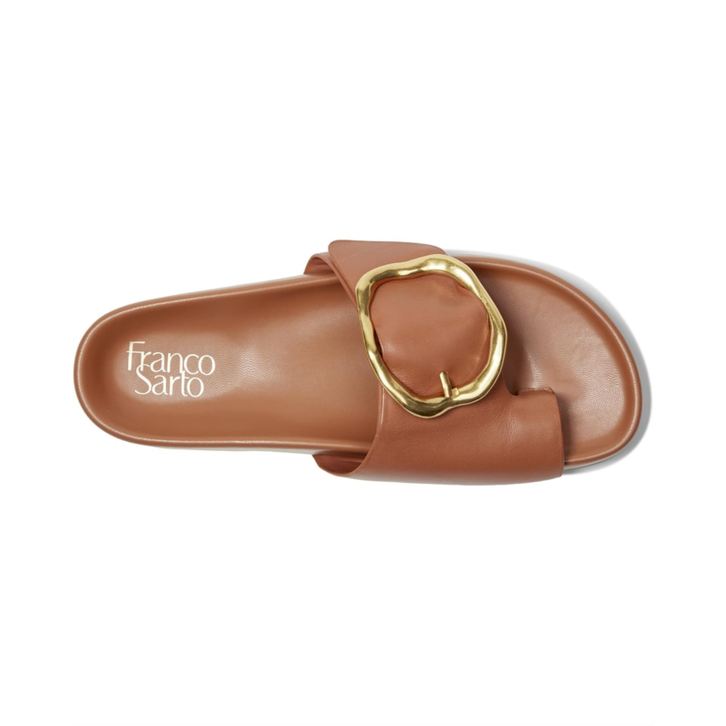 - The Franco Sarto Brianka Slide Sandals bring a chic, modern twist to your everyday style, blending comfort and sophistication in a silhouette made to elevate every outfit. Crafted with a premium leather upper made from eco-conscious materials, these slides deliver both fashion and feel-good sustainability. The sleek metallic ornament detail adds a polished touch, while the adjustable buckle closure ensures a secure, personalized fit. A soft PU lining and cushy EVA insole offer all-day comfort, supported by a durable synthetic rubber outsole that moves with you. Designed with a versatile round toe and easy slip-on construction, the Brianka is truly your go-to sandal.