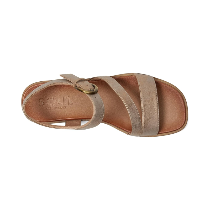 - Featuring the Soulcontour technology, the Naturalizer SOUL Naturalizer Jayvee sandals are easygoing flat sandals with a strappy design. The synthetic upper comes with an open, round toe silhouette. These flat sandals are made of a sculpted EVA insole, premium foam lining, arch support with memory foam, and lightweight and flexible outsole.