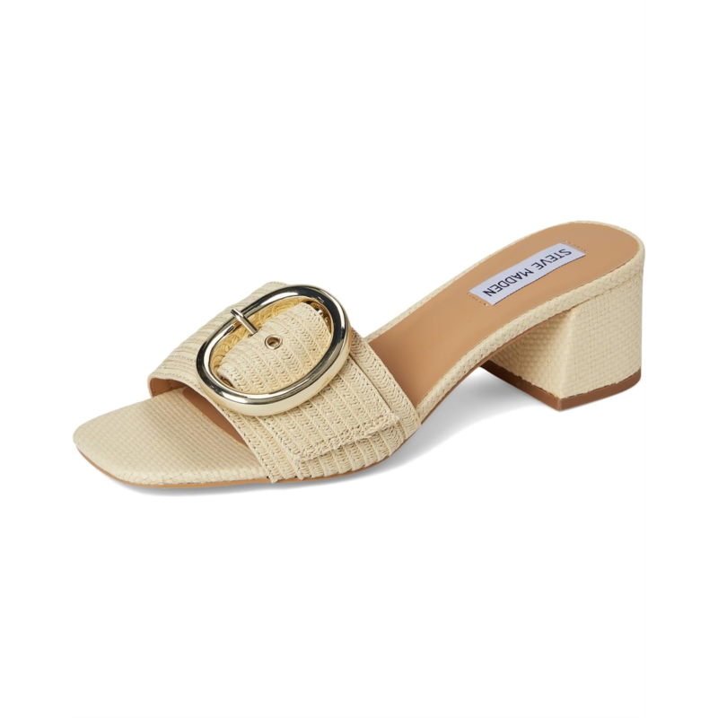 - Rock your chic style with the Steve Madden SEACREST sandal. A block heel enhances this dress sandal with a square open toe and buckle embellishment for a modern look.