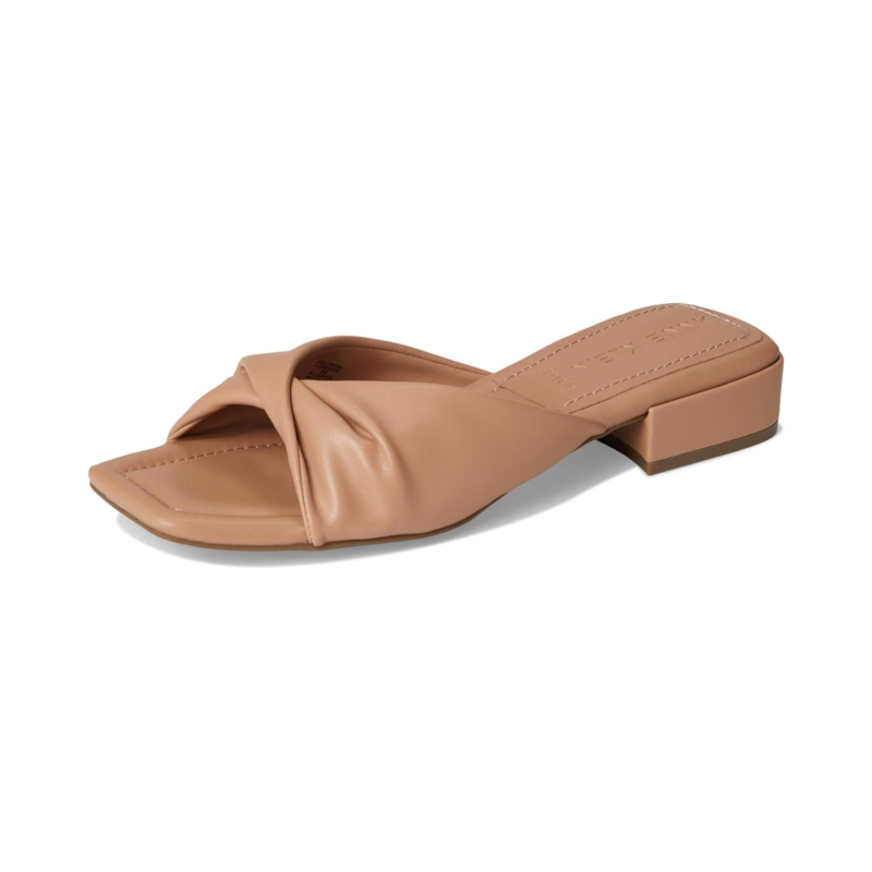 - Not only will your feet look good but they will feel even better with the Anne Klein Lorena sandal. It features a short block heel and a chic square toe. Its crisscross polyurethane upper straps add sophistication while providing a secure fit. Designed for easy slip-on wear, this pair prioritizes comfort, making it versatile and ideal for any occasion.