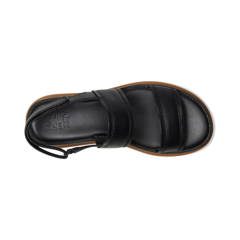 - Summer + sandals: some things just go hand in hand. Meet your new faves, the Naturalizer Attract sandals. The polyurethane upper features an open, round toe shape and a slingback strap with an adjustable hook-and-loop closure. These platform sandals are made of a foam insole and polyurethane lining. The Contour+ Comfort technology provides a premium fit and all-day comfort experience. Designed to the contours of a womans foot, walk with style and confidence wearing these sandals.