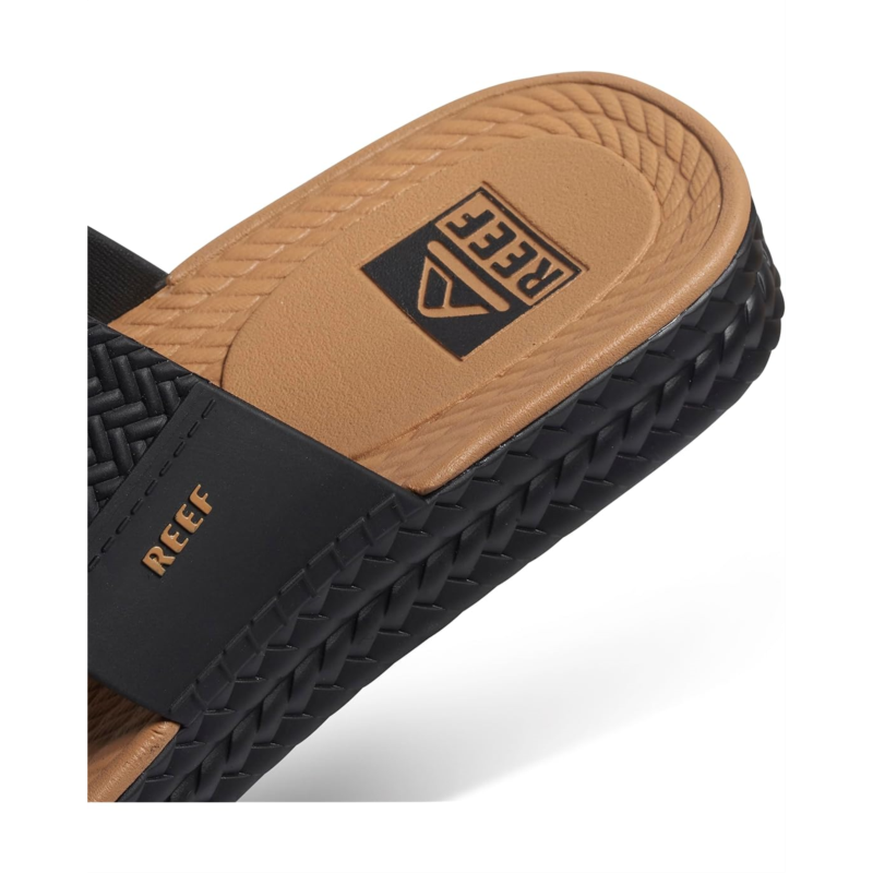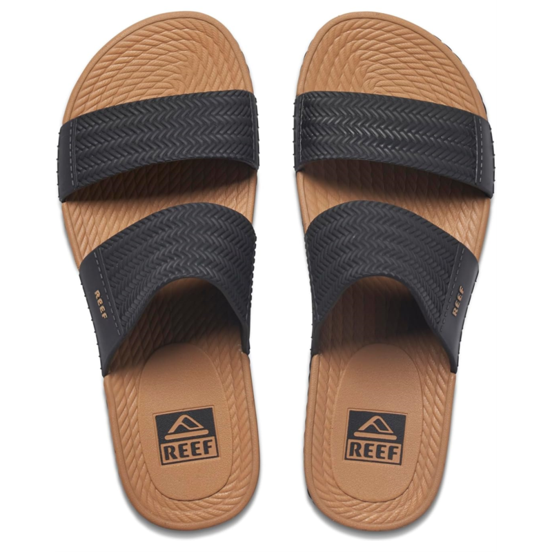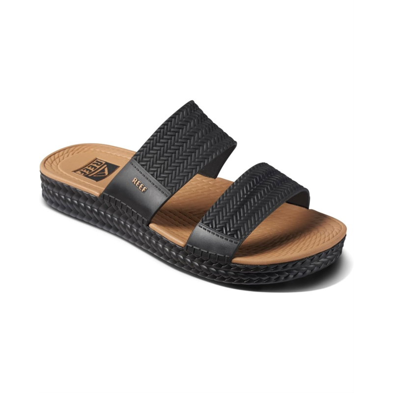 - Enjoy sunset beach walks wearing the waterproof Reef Water Vista Slide slip-on style sandal.