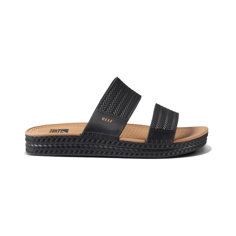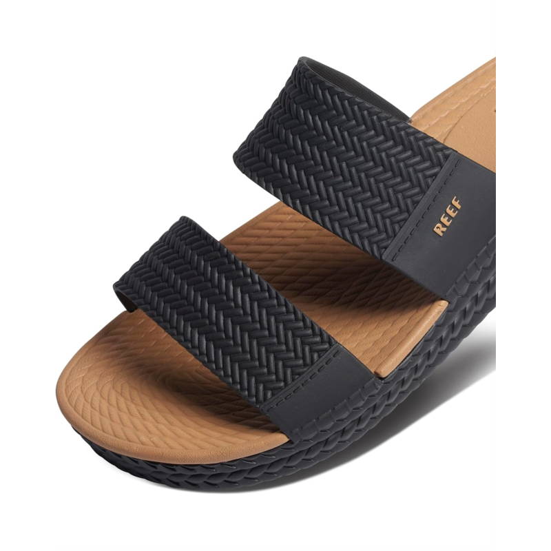 - Enjoy sunset beach walks wearing the waterproof Reef Water Vista Slide slip-on style sandal.
