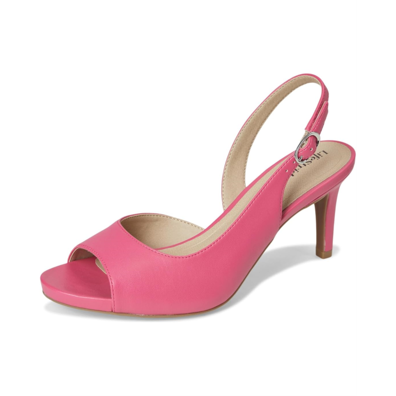 - Walk into the room and own it donning these stunning LifeStride Teller 2 Slingback Peep Toe Pumps. Crafted from faux leather upper with open toe design, heel sling strap with built-in stretch, and adjustable buckle closure. The Soft System comfort package provides all-day support, flex, and cushioning. The pumps feature Fab Flex tech with a super flexible, ultra-padded platform heel for ultimate comfort.