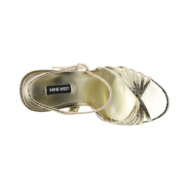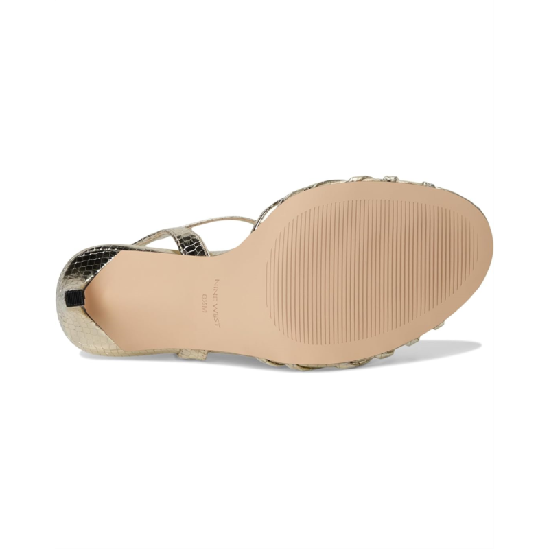 - Upgrade your wardrobe by adding to it the uber-stylish Nine West Meripen Dress Sandals. Featuring a strappy design, high stiletto heel, and an adjustable ankle strap with buckle closure, this sandal is sure to turn heads! It is skillfully crafted with a man-made upper, man-made lining, and a cushioned insole.